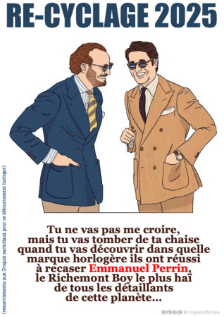 Chez Richemont, on recycle en dépit du bon sens !Le 03 / 03 / 2025 à 15:00 Par Le sniper de Business MontresOn disait autrefois : déshabiller Pierre pour habiller Paul – expression plus ou moins biblique qui désigne le fait de résoudre un problème en en créant un autre. Après le fabuleux échec de la sous-division SWM chez Richemont, où allait-on recaser Emmanuel Perrin ? Comme toujours chez Richemont, exactement là où il fallait pas…