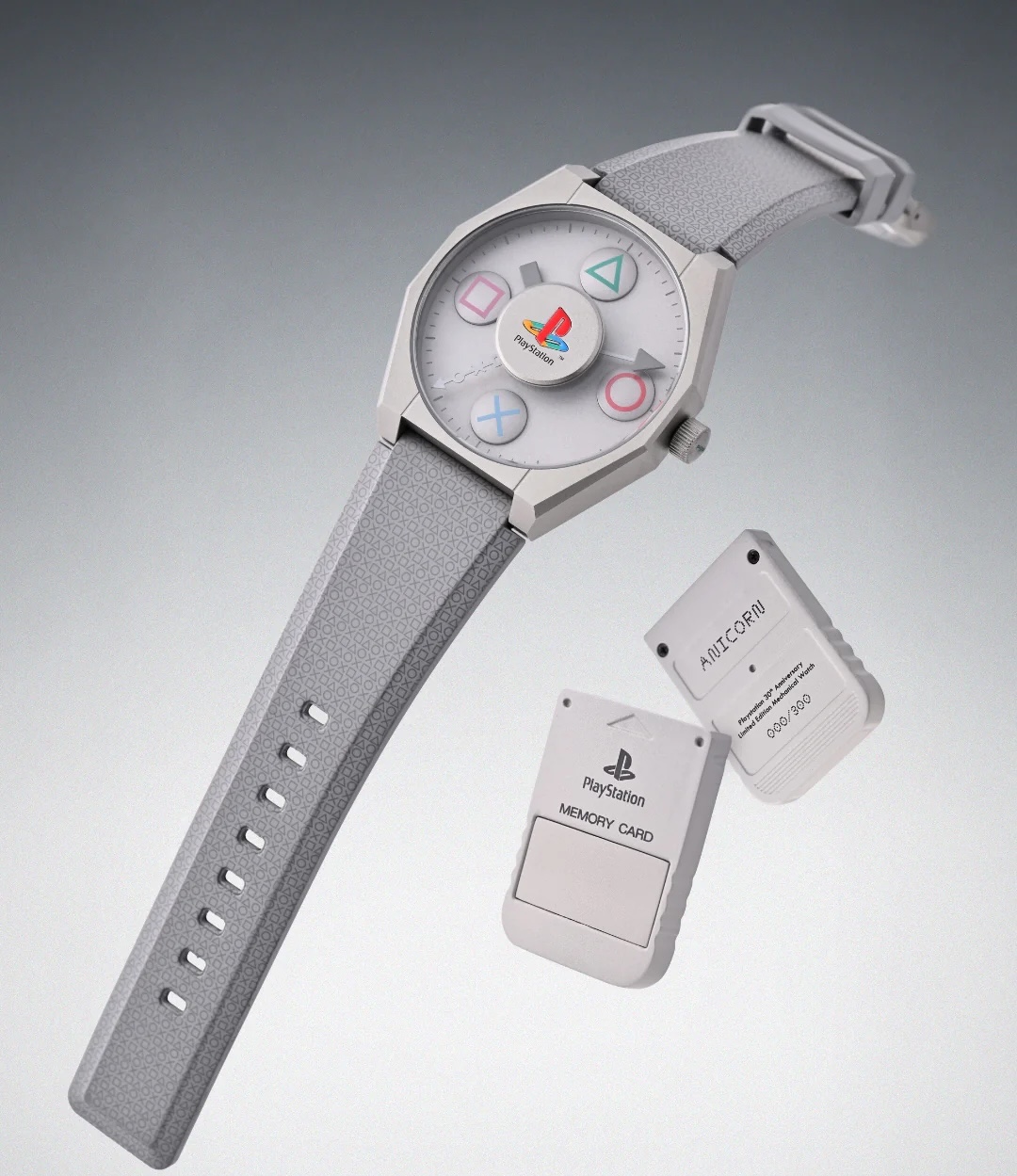 UN COMMENTAIRE ? il est assez paradoxal de fêter les trente ans d’une légende de l’électronique domestique par une montre mécanique, mais la nostalgie a ses raisons que la raison ignore : il faut compter dans les 780 dollars pour cette montre en acier de 42,8 mm x 48 mm x 11,8 mm d'épaisseur, étanche à 50 m, animée par un mouvement mécanique japonais (Miyota) prévu pour 42 heures de réserve de marche et livrée avec une capsule de mémoire, mais sans la console PlayStation 1). Il paraît que les 600 premières montres de cette série limitée sont déjà vendues…