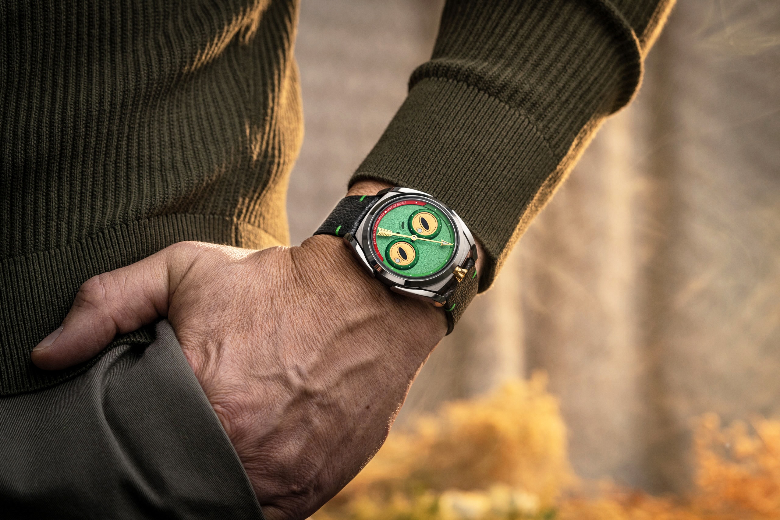Il était une fois… Non, ici le « il était » est twisté ! Louis Érard et Konstantin Chaykin sont de retour pour faire sauter les conventions, réviser les contes comme les traditions. Et oui ça saute aux yeux ! Voici l’Unfrogettable. Une Princesse grenouille que vous n’êtes pas prêt d’oublier. Tout droit sortie du folklore slave, habillée de la force des samouraïs et née dans le Jura Suisse. Un nouveau boîtier entièrement repensé, un régulateur devenu créature, un sortilège en mouvement. Née de l ’ingéniosité de Chaykin et teinté de l ’esprit rebelle de Louis Érard. Le résultat ? Tout le monde va s’en souvenir. Derrière le fun, la précision. Derrière la folie, l a maîtrise. « Avec Konstantin, on est bien au -delà d’une collaboration. C’est un vrai partenariat créatif et une amitié. Deux maisons libres qui osent déranger. Notre nouveau personnage, c’est l’Unfrogettable. On ne s’est pas contentés du cadran, des aiguilles, de la couronne. On a repensé le boîtier. On avait déjà fait des tourbillons, des complications. Cette fois, on a modelé les surfaces de ce nouveau boîtier en titane. Le bracelet, c’est le même cuir que celui utilisé pour les armures de samouraï. Chaque détail a du sens. La grenouille, dans les contes russes, est un sortilège déguisé. Au Japon, elle symbolise la chance et la résilience. Ensemble ça donne un hybride, une grenouille au cœur de guerrier. Cette montre est ludique, un peu folle, mais derrière la malice , il y a une horlogerie sérieuse. Une histoire racontée à travers la mécanique horlogère, avec un twist » (Manuel Emch).