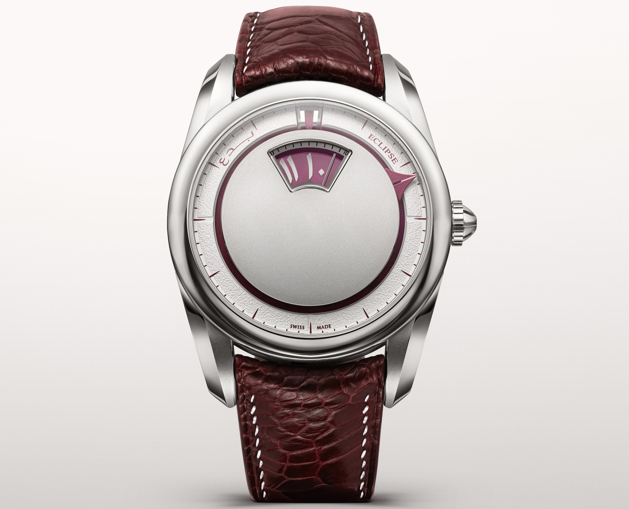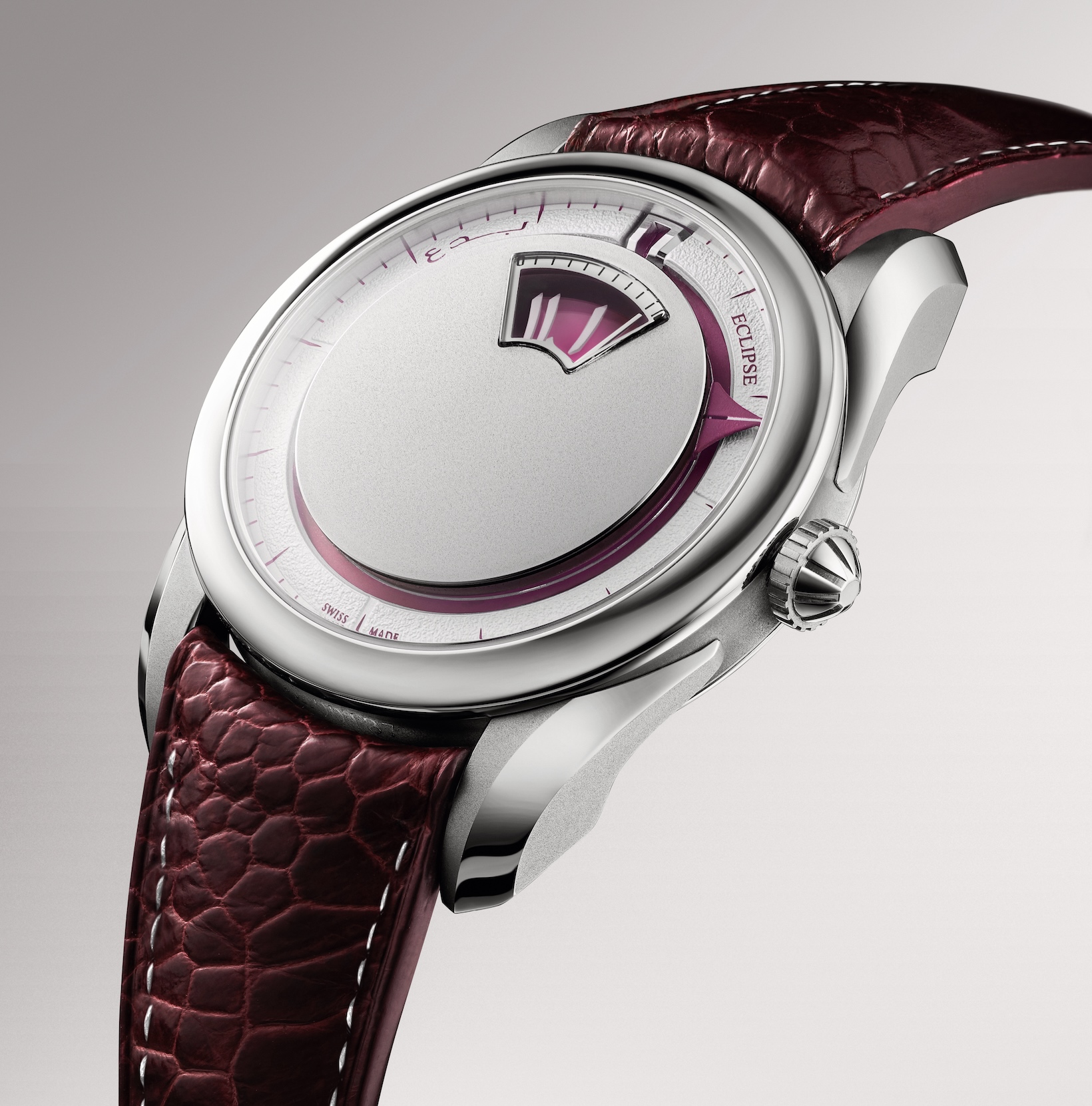 Au-delà du langage stylistique distinctif de l'Eclipse, la dernière nomination au Grand Prix d'Horlogerie de Genève (GPHG) de cette année a récompensé la capacité de la marque à exprimer sa créativité, son innovation et sa profondeur technique à un prix accessible, ce qui correspond parfaitement à l'esprit du Challenge Prize. Inspirée par le phénomène naturel rare dont elle tire son nom, Eclipse réinvente la lecture du temps dans une perspective minimaliste mais saisissante. Encadré par un boîtier en acier inoxydable de 37 mm, un « bouclier céleste » dissimule la majeure partie du cadran, ne laissant apparaître que l'essentiel : une fenêtre des heures, un indicateur des minutes flottant et un compteur discret des 10 secondes. Le bouclier lui-même flotte juste sous le verre saphir, créant une connexion tactile et un jeu de lumière qui évoque la couronne d'une éclipse. Sous ce cadran architectural se trouve le mouvement automatique Sellita SW300, visible à travers un fond saphir. Avec son profil de 8,1 mm et sa construction raffinée des cornes – chacune d'entre elles étant finie individuellement et fixée au boîtier concave à l'aide de vis invisibles –, Eclipse allie présence visuelle et confort ergonomique.