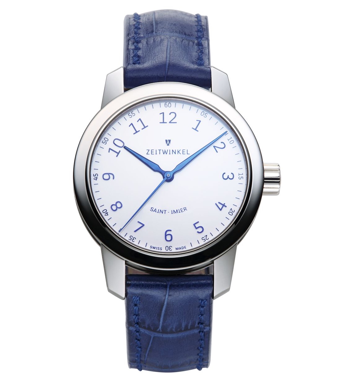 Notre modèle 082° Enamel Grand Feu se distingue de toutes les autres montres Zeitwinkel par son cadran en émail. Les chiffres en émail bleu et les aiguilles des heures et des minutes faites à la main et bleuies à la main constituent une autre particularité. Cette montre exceptionnelle est animée par notre calibre manufacture ZW0102 avec platines en maillechort, remontage automatique et réserve de marche de 72 heures. La Zeitwinkel 082° Enamel Grand Feu allie l'horlogerie artisanale à la tradition de l'émail « Grand Feu ». De plus, les chiffres en émail bleu dans notre police de caractères Zeitwinkel signature et les aiguilles faites à la main rendent chaque montre absolument unique. Les aiguilles de la montre sont fabriquées par l'un de nos horlogers qui passe au moins une journée à finir chaque jeu d'aiguilles. En exclusivité pour nos montres à aiguilles faites à la main, nous décorons en outre le mouvement manufacture avec des vis bleuies. Grâce à un processus élaboré et à une maîtrise parfaite des matériaux et des températures, notre modèle 082° émail grand feu séduit par son cadran en émail brillant d'une beauté durable. Le modèle Zeitwinkel 082° émail grand feu incarne de manière puriste la configuration classique à trois aiguilles avec aiguilles des heures, des minutes et des secondes au centre. Nous avons développé les aiguilles des heures et des minutes spécialement pour ce modèle et les avons adaptées au cadran en émail. Elles sont fabriquées à la main dans nos ateliers de Saint-Imier. Afin de garantir une lecture facile de l'heure à tout moment, même dans des conditions d'éclairage différentes, nous avons chanfreiné les aiguilles des heures et des minutes sur presque toute leur longueur et les avons bleuies, tout comme l'aiguille des secondes.
