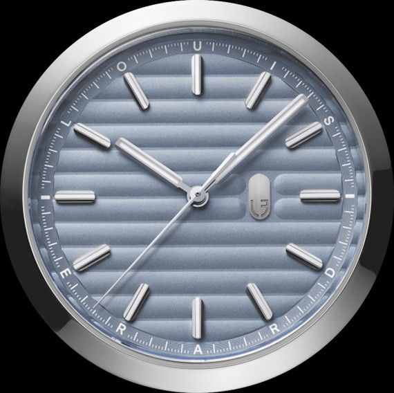 Mais aussi une parabole alpestre, une Schtrumpfette en talons blancs, une héritière toutes en courbes, une sportive chic en titane et une migration persique… Images ci-dessous : la ligne bleue du sport chic qui mise sur le titane (Louis Érard) et la Toccata qui nous touche (Raymond Weil)...
