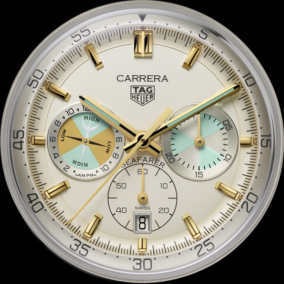 Mais aussi la lumière noire du bleu fumé, la valve à hélium d’une plongeuse accessible, un chronographe solaire qui promet bien du plaisir, des classements convergents et une inspiration anglaise en mode suisse (quadrigésimal, c’est pour le Carême !). Images ci-dessous : un poussoir pour vérifier si la mer monte (TAG Heuer)…