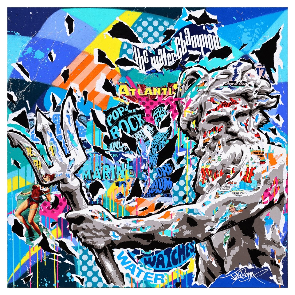 Dans une démarche audacieuse visant à réinventer la montre de plongée classique sous un angle urbain et contemporain, Edox s’est associée à l’artiste français Jo Di Bona pour donner vie à la Pop Neptunian Automatic Limited Edition. Éditée à seulement 100 exemplaires dans le monde, cette création saisissante marie l’énergiecréative du street art à la maîtrise technique de l’horlogerie suisse.Interrogé sur l’origine de son œuvre, Jo Di Bona explique : « J’ai commencé par le graffiti au début des années 90, et aujourd’hui je suis fier de faire partie de la grande famille de l’art urbain contemporain. Pour cette collaboration avec Edox, je me suis inspiré d’une sculpture du XVIIIe siècle exposée au Louvre, intitulée « Neptune calmant les flots ». Il y a dans cette œuvre un contraste entre le calme et la puissance — et c’est précisément ce qui m’a inspiré à créer cette pièce, qui fait également écho à l’esprit d’une montre conçue pour résister jusqu’à 300 mètres de profondeur. » Inspirée de la sculpture du XVIIIe siècle « Neptune calmant les flots », exposée au Louvre, Pop Neptunianréinvente le dieu romain de la mer dans un monde contemporain etchaotique. L’œuvre explore les contrastes – entre puissance et sérénité,classicisme et modernité urbaine, contrôle et énergie – à l’image de lamontre pour laquelle elle a été créée. Le processus créatif de Jo Di Bona mêle traits de graffiti, pochoirs, couleurs vives, coulures depeinture et fragments d’affiches anciennes. Pour cette pièce, il a également intégré des découpages de titres issus de vieux comics etd’anciennes publicités Edox, créant ainsi un riche dialogue visuel entrepassé et présent. Le geste final — une déchirure à travers une imageen noir et blanc révélant des couches cachées — apporte à l’œuvre profondeur, tension et émotion, telle une vision sous- marine émergeant à la surface.