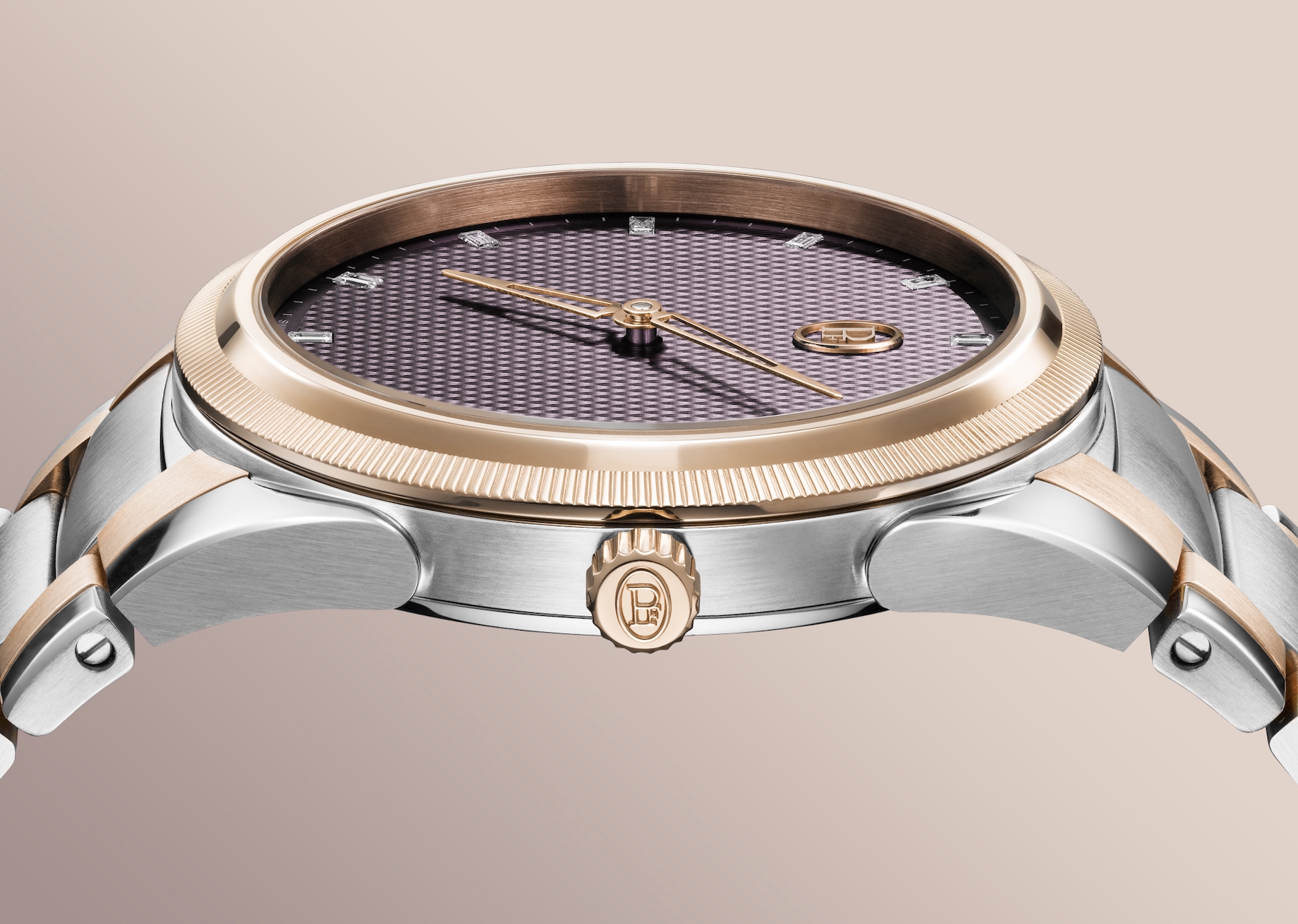 Parmigiani Fleurier présente fièrement la dernière interprétation de son emblématique Tonda PF Automatique, lauréate du prestigieux Grand Prix d’Horlogerie de Genève (GPHG) en 2022. Cette version de 36 mm, réalisée en acier inoxydable et en or rose 18 carats, se distingue par son cadran rubis profond et ses index en diamants baguette. Elle incarne parfaitement l’élégance contemporaine et le raffinement, tout en conservant une aura de sophistication et d’exclusivité, capable de séduire les connaisseurs les plus avertis. La teinte intense Deep Ruby du cadran représente le summum de la sophistication moderne, devenant le nouveau noir du luxe contemporain. Riche, chaud et nuancé, ce ton bordeaux résonne profondément, évoquant la passion, la créativité et un goût raffiné.Souvent associé à l’innovation et à une sophistication audacieuse, les nuances profondes de cerise sont appréciées des connaisseurs pour leur capacité à élever l’esthétique classique vers quelque chose de plus audacieux et distinctif. Au cœur de ce garde-temps se trouve un captivant motif guilloché « Grain d’Orge », minutieusement réalisé à la main par des artisans qualifiés. Ce motif complexe anime le cadran en jouant subtilement avec la lumière, mettant en valeur sa profondeur et sa chaleur grâce à un savoir-faire artisanal d’exception. Les index des heures sont sertis de douze diamants baguette appliqués à la main, d’une pureté exceptionnelle (D-G/IF-VVS), totalisant environ 0,36 carat, marquant élégamment le passage du temps. Chaque diamant, minutieusement choisi pour sa clarté impeccable et sa géométrieprécise, rehausse la sophistication du cadran et sa profondeur luxueuse, offrant une harmonie visuelle délicate mais marquante.