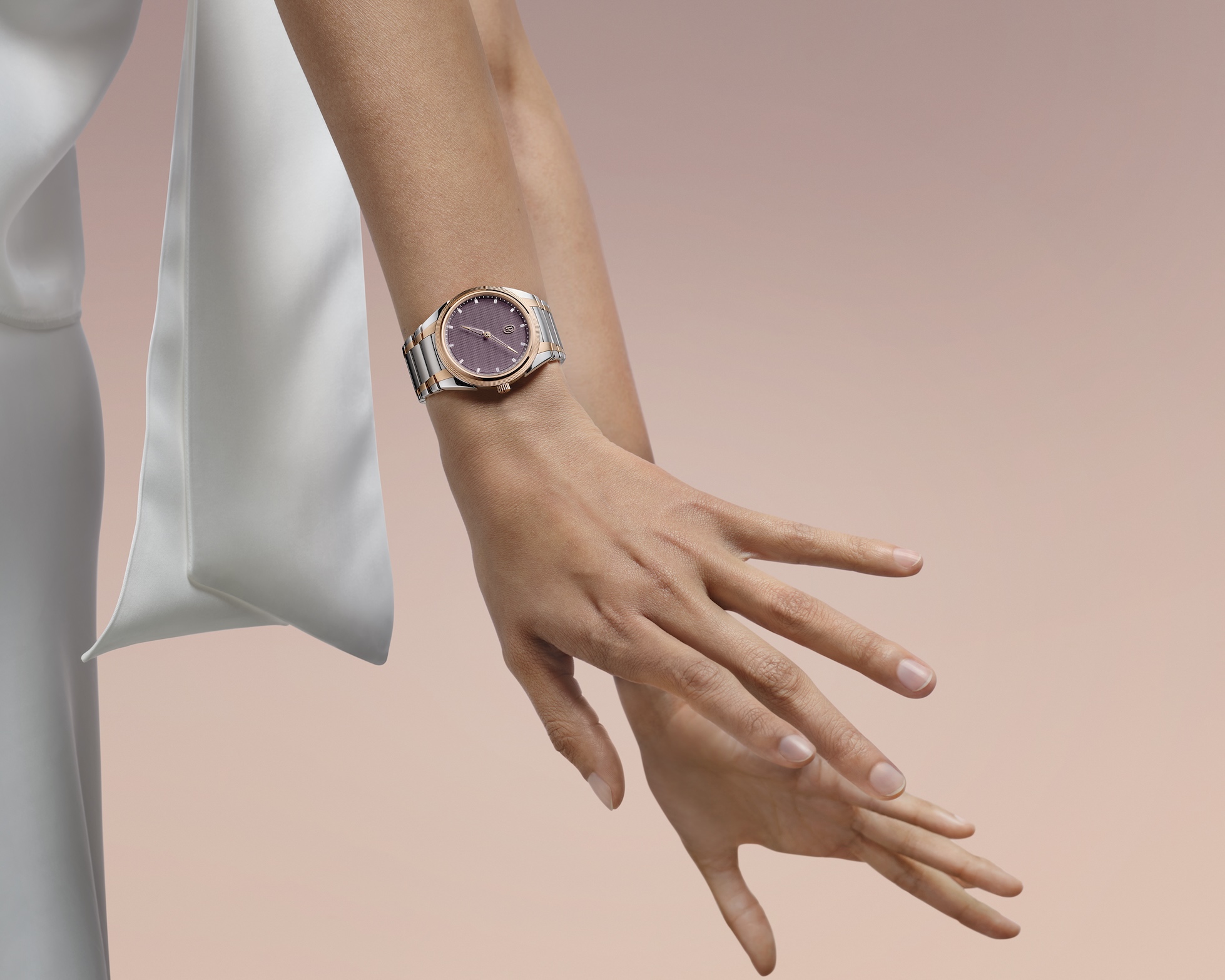 Le charme unique de cette montre réside en grande partie dans son habile utilisation des métaux mixtes. Parmigiani Fleurier dépasse les conventions des designs bicolores en faisant de l’or rose un élément structurel et esthétique à part entière. Le bracelet, construit comme une cascade fluide— un véritable « rivage d’or »— habille le poignet avecgrâce grâce à des maillons dégressifs soigneusement effilés pour une ergonomie parfaite. Les composants en acier inoxydable et en or rose 18 carats s’entrelacent harmonieusement, créant un objet de luxe tangible et de fluidité sophistiquée. La lunette soigneusement moletée, les finitions alternant entre poli et satiné sur le bracelet, ainsi que la silhouette élégante offrent une expérience visuelle et tactile captivante. Cette juxtaposition harmonieuse renforce non seulement l’attrait contemporain de la montre, mais souligne également l’engagement indéfectible de Parmigiani Fleurier envers le souci du détail méticuleuxet l’exécution maîtrisée. Animé par le calibre automatique de manufacture PF770, la Tonda PF Automatic Steel Gold Deep Ruby allie excellence mécanique et art horloger de haute tradition. Doté d’uneréserve de marche de 60 heures et fonctionnant à 28 800 vibrations par heure, ce mouvement incarne la précision et la fiabilité. Décoré des traditionnelles « Côtes de Genève » et de ponts biseautés, il est couronné par une masse oscillante squelettée en or rose 22 carats, polie et sablée à la perfection. Parmigiani Fleurier redéfinit continuellement le luxe moderne à travers la retenue, l’équilibre et un savoir-faire exceptionnel. La collection Tonda PF, en particulier, est célébrée pour son élégance discrète, ses proportions soignées et sa sophistication intemporelle. Chaque montre de cette série incarne la philosophie de la Maison, qui consiste à créer des objets qui parlent avec assurance tout en restant discrets, des objets à l’attrait intime, célébrant à la fois l’innovation et l’authenticité sans compromis. Cette dernière interprétation, la Tonda PF Automatic Steel Gold Deep Ruby, reflète l’engagement de Parmigiani Fleurier envers une esthétique raffinée et des matériaux précieux. Elle invite les collectionneurs et les amateurs à savourer le plaisir subtil mais profond de posséder un garde-temps à la fois contemporain et intemporel, précieux tout en restant accessible.