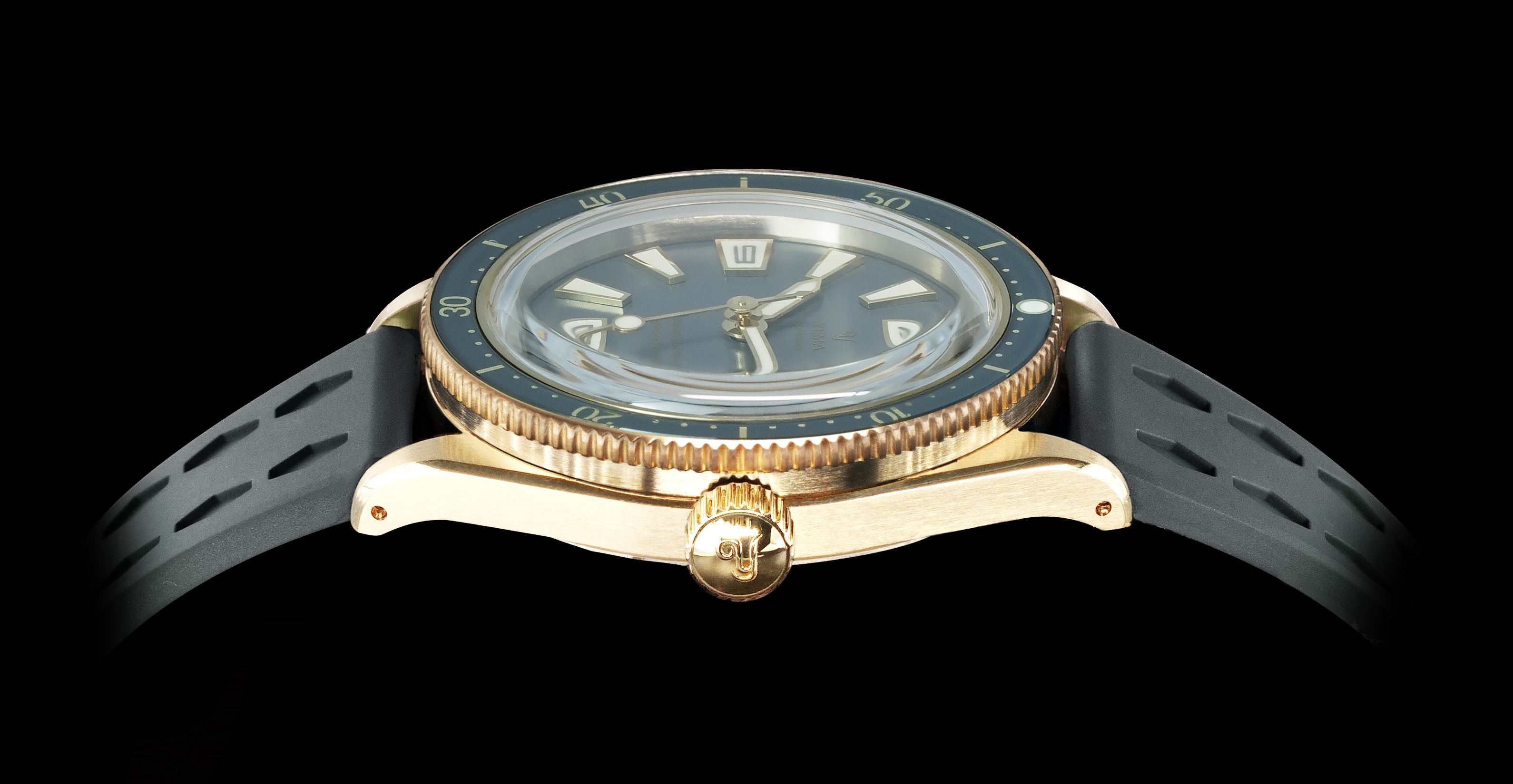 UN COMMENTAIRE ? Quel bonheur de retrouver l’esprit des années 1960 dans cette Skin Diver : à l’époque, le mot était inconnu pour désigner les « plongeuses », mais les montres étaient déjà là avec tous les codes sportifs qui ont infusé depuis d’autres univers de l’horlogerie ! Quel plaisir de sorter une montre aux dimensions très justes (boîtier en bronze de 39 mm x 10 mm, étanche à 300 m et alimenté par un des meilleurs mouvements « manufacture » de l’offre contemporaine des micro-rotors, avec 70 heures de réserve de marche pour une précision chronométrique de l’ordre de -3/+7 secondes/jour – on peut l’admirer à travers le fond saphir). Il faut compter dans les 2 300 euros pour cette édition limitée de 200 montres, qui fait revivre l’esprit des belles « plongeuses » de l’âge d’or, au moment précis où elles ont commencé à devenir des montres plus urbaines que strictement professionnelles…