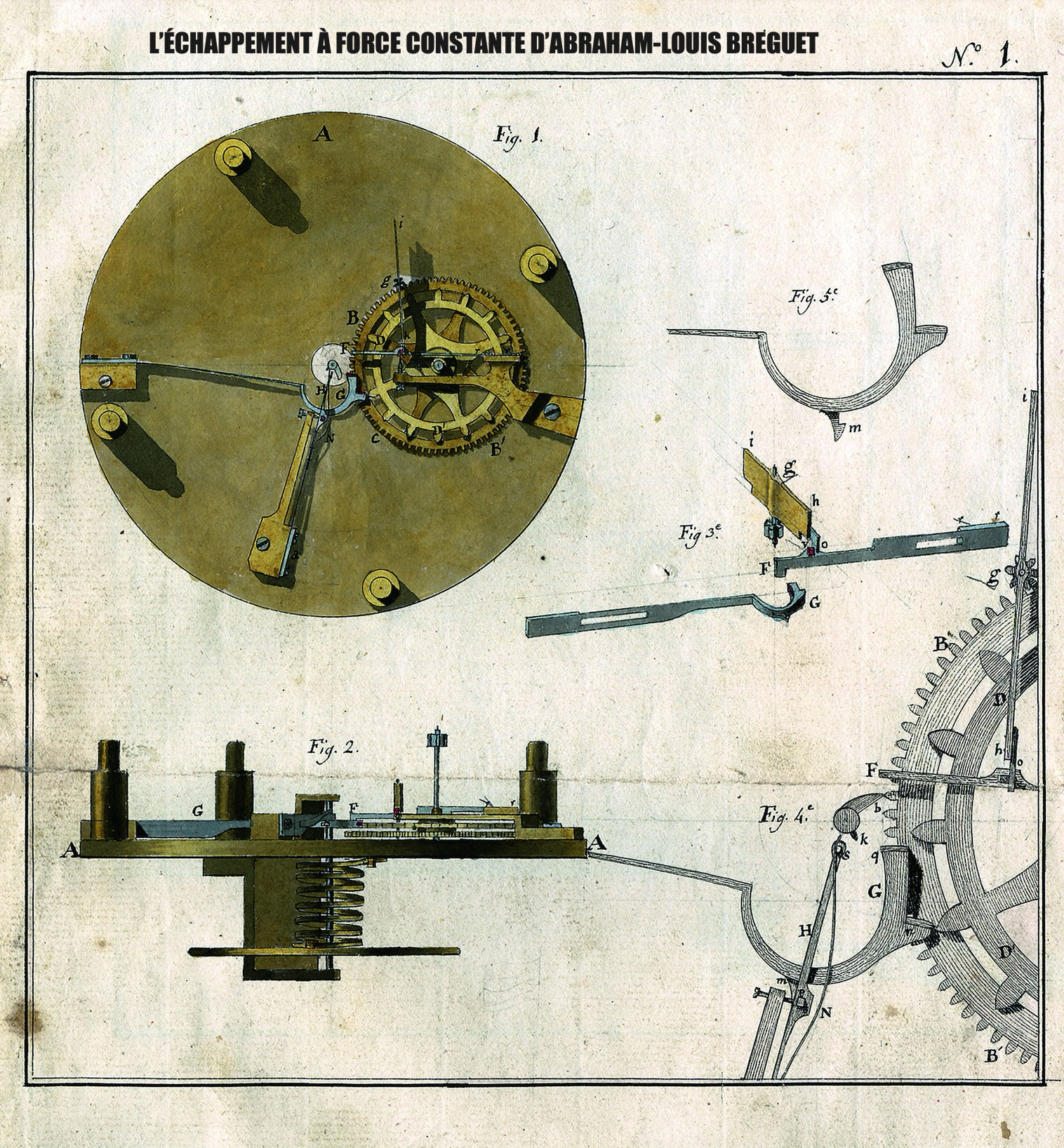 Sur le plan technique, c’est avec la même évidence que s’est imposé le choix des singularités qui concourent à une meilleure précision. La précision était, et restera, le moteur de l’innovation Breguet. C’était la raison d’être de la quasi-totalité des innovations d’A.-L. Breguet, horloger ayant œuvré toute sa vie au perfectionnement de l’art horloger. On note d’ailleurs que Breguet n’a de son vivant déposé que de rares brevets - l’époque l’exigeait peu. Deux ont marqué leur temps. Le premier, sur la force constante, le 9 mars 1798. Le second, sur le tourbillon, le 26 juin 1801. Deux siècles plus tard, la manufacture Breguet reprend à son tour la route du grand horloger en poussant plus loin ces deux travaux fondamentaux sur le tourbillon et l’échappement à force constante. Ils constituent, avec l’échappement magnétique, le cœur de l’Expérimentale 1. Ses composantes ont été pensées, comme les créations originales d’A.-L. Breguet, pour apporter une véritable valeur ajoutée au produit. L’Expérimentale 1 inaugure le chemin vers une nouvelle ère horlogère où la maison mettra en valeur les fruits de ses recherches horlogères et scientifiques. La quête de précision ne peut se résumer à un problème unique, avec une solution unique. Elle combine au moins trois variables. La première : la constance de l’amplitude du balancier. Ce dernier se place en aval du barillet, dont le couple diminue à mesure que la réserve de marche se réduit. Il est donc par nature très délicat pour le balancier de conserver une amplitude constante si l’énergie qu’il reçoit ne l’est pas. La deuxième : l’influence de la gravité terrestre. Elle influence particulièrement l’ensemble du régulateur (balancier et spiral), affectant sa marche. La troisième : la résistance aux chocs. Toute montre contemporaine subit des accélérations traduites en multiples de l’accélération gravitationnelle terrestre « g ». Plus brutalement, elle peut endurer des chocs - le simple fait de poser sa montre sur une surface dure en est un. Chaque choc et chaque mouvement pénalise la marche régulière de la montre. Et affecte donc sa précision. Poser les termes de cette équation horlogère permet de comprendre les trois choix techniques retenus par Breguet pour les résoudre. Ils sont réunis dans une seule et même solution, aussi élégante qu’ingénieuse : un tourbillon 10 Hz à échappement magnétique à force constante. Le magnétisme : il permet de donner au balancier une impulsion stable sur l’ensemble de la réserve de marche. Mais également de découpler la fonction d’impulsion de la rotation de la roue d’échappement, de la cage de tourbillon et du reste du rouage. Le tourbillon brasse en 60 secondes les différentes positions verticales que peut prendre la montre. Il permet donc de moyenner naturellement les variations de marche dues à la gravité La haute fréquence permet au balancier de revenir plus rapidement à son amplitude normale après avoir été perturbé par un choc.