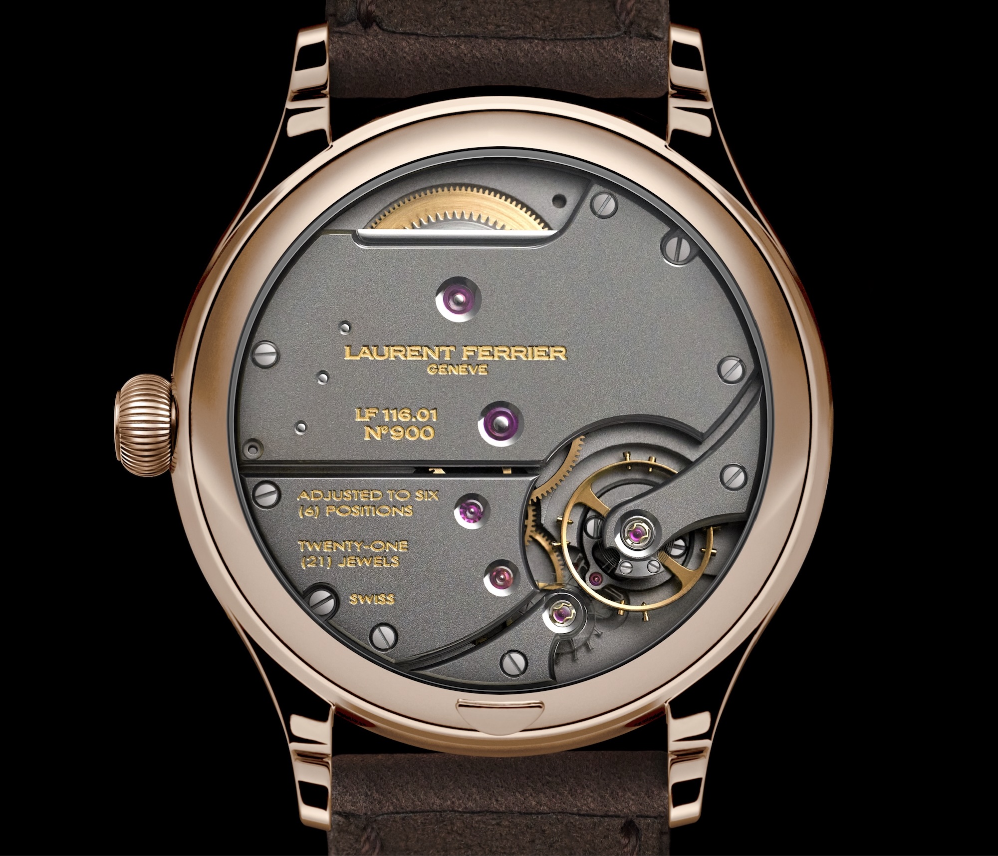 Sous le fond saphir se trouve le calibre LF116.0 1, à remontage manuel. Il est le cœur battant de la Classic Origin Beige, conçu avec ce raffinement absolu que la Maison réserve à ses mouvements. Au centre, un balancier à vis s’anime, guidé par un spiral recourbé de type Breguet. Cette alliance n’est pas un hasard : elle permet une précision accrue, réduit les écarts dus aux positions et garantit une régularité du temps, afin que chaque seconde s’écoule avec la même justesse que la précédente. Mais ce mouvement cache aussi un autre secret, cher aux amateurs éclairés : le fameux cliquet à lame longue. Poli et bassiné à la main, il délivre au remontage une sensation unique, un cliquetis clair, incomparable. Un son qui résonne comme la signature des garde-temps les plus exigeants. Et lorsque la montre est pleinement remontée, elle offre plus de 80 heures d’autonomie. Le calibre LF116.0 1 se veut plus épuré que certains mouvements à complications de la Maison, mais n’en conserve pas moins la même exigence de finitions. Les ponts, ornés d’une finition sablée, sont traités au rhodium noir, tandis que chaque arête est polie à la main. Par contrastes, les vis, polies miroir, brillent comme des éclats de lumière. L’ensemble des terminaisons ainsi que l’angle rentrant façonné manuellement sur le pont d’échappement rappellent le savoir-faire patient des artisans de la Maison. Chaque composant est terminé à la main par l’atelier. Rien n’est laissé au hasard, pas même l’invisible. Enfin, un bracelet en nubuck moka, doublé d’Alcantara, complète cette harmonieuse combinaison. Sa boucle ardillon en or rouge 5N répond au boîtier avec chaleur et élégance, prolongeant l’esprit de la pièce jusque dans le moindre détail.La Classic Origin Beige n’est pas une simple montre. Elle est le témoin d’une histoire commencée il y a quinze ans. Elle en condense la mémoire, elle en prolonge le souffle. Et surtout, elle incarne cette vérité discrète mais inaltérable : certaines beautés ne s’usent jamais. Elles ne se contentent pas de traverser le temps. Elles l’apprivoisent.