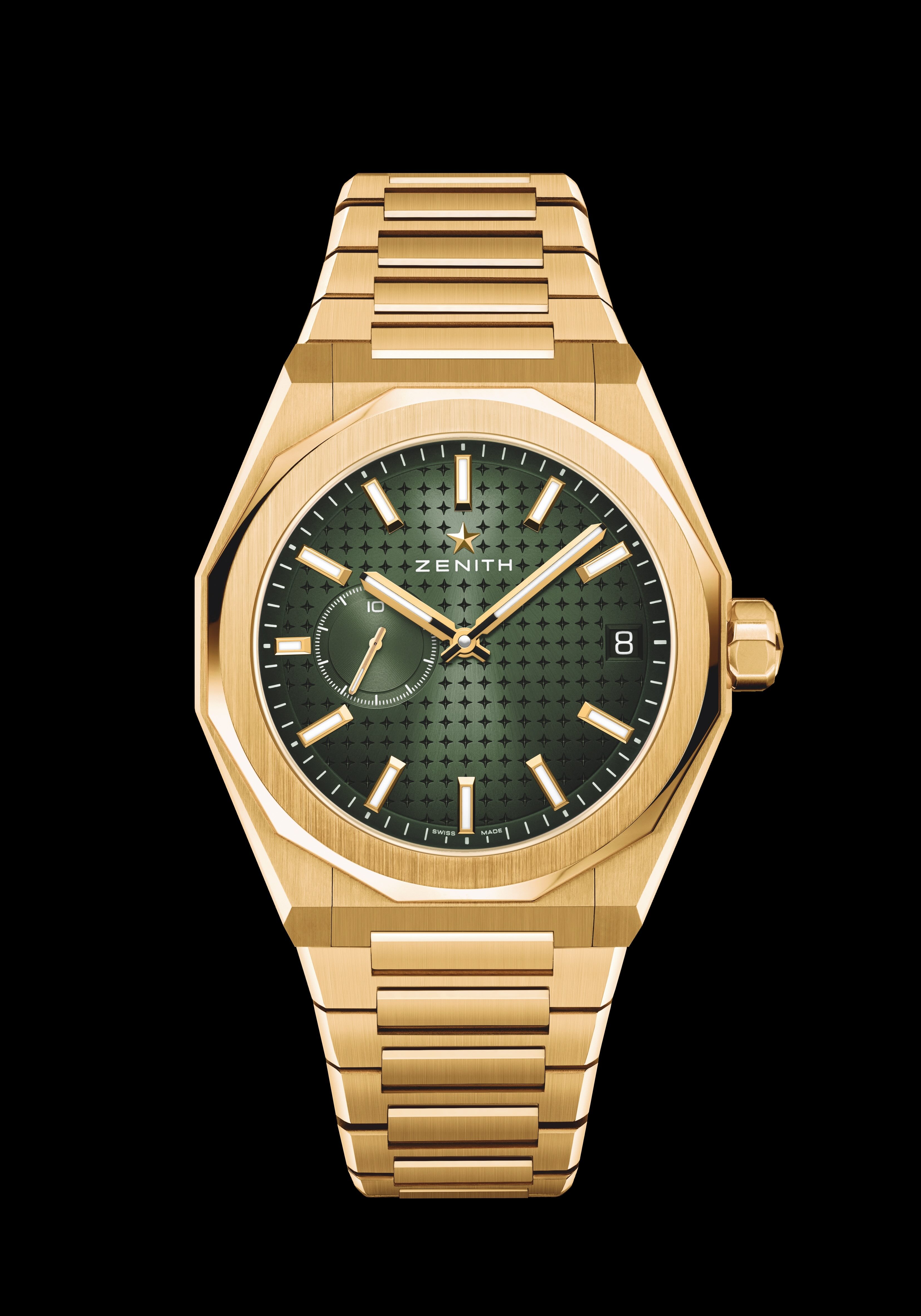 Pour célébrer la magie des fêtes, Zenith dévoile quatre nouvelles créations lumineuses de sa collection Defy, chacune habillée d’or pour sublimer les codes les plus emblématiques de la ligne. Qu’il s’agisse d’un modèle trois aiguilles d’une précision remarquable, d’un chronographe haute fréquence, d’une version ajourée spectaculaire ou d’un tourbillon d’exception, cette série réunit tout le savoir-faire de la manufacture dans une esthétique précieuse et contemporaine. Pour la première fois, ces montres entièrement façonnées en or sont proposées sur des bracelets assortis, offrant une interprétation inédite et raffinée de l’audace Defy. Reconnaissable entre toutes, la Defy Skyline conserve les lignes anguleuses inspirées des premiers modèles de la collection, tout en les revisitant avec modernité. Sa silhouette architecturale, évoquant les reflets changeants des grandes métropoles illuminées, s’habille désormais d’or, mariant la chaleur d’un matériau intemporel à l’éclat d’une célébration contemporaine. Avec son boîtier de 41 mm et son bracelet intégralement réalisés en or jaune, la nouvelle Defy Skyline propose une vision sophistiquée du design urbain cher àZenith. Son cadran vert olive aux finitions satinées soleil joue subtilement avec la lumière, révélant des nuances chaudes qui répondent harmonieusement à celles de l’or. Le motif étoilé ton sur ton apporte relief et dynamisme, tandis que le disque de date assorti assure une parfaite continuité esthétique. La montre est animée par le calibre automatique El Primero 3620, qui bat à haute fréquence et entraîne l’indicateur caractéristique du 1/10e de seconde à 9 heures, signature de la précision propre à la collection Defy.