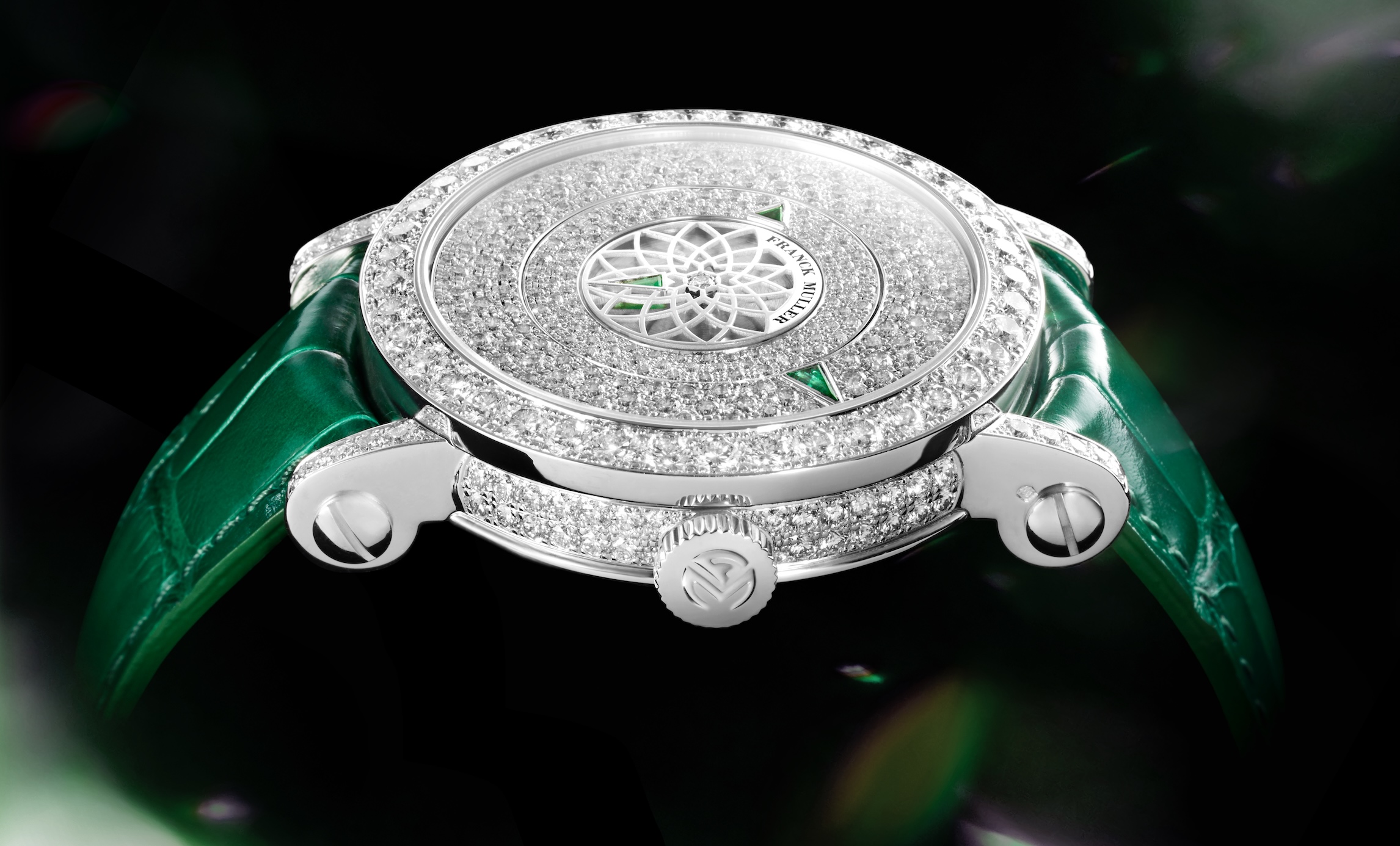 L'intégration du deuxième disque rotatif avec le Double Mystery a représenté un défi technique important en raison de sa rotation rapide, nécessitant une légèreté exceptionnelle pour garantir une efficacité énergétique et des performances optimales. En effet, le simple fait d'ajouter un troisième disque rotatif pour les secondes augmenterait considérablement la consommation d'énergie du mouvement. C'est pourquoi le disque central des secondes est squeletté afin d'atteindre deux objectifs essentiels : créer un design enchanteur au cœur de ce garde-temps extraordinaire et garantir la légèreté nécessaire au bon fonctionnement du mouvement. L'un des plus grands défis techniques a été de développer un disque des secondes qui resteexceptionnellement léger afin de maintenir la précision du mouvement. L'ensemble de la structure ne pèse que 0,052 g, l'aiguille indicatrice 0,002 g, le diamant 0,003 g et la pastille squelettée 0,047 g. Cet équilibre délicat a été méticuleusement étudié pour garantir que le disque des secondes tourne sans effort et sans perturber les performances du mouvement. Après des recherches approfondies et de nombreux tests sur divers matériaux, les ingénieurs de Franck Mulleront choisi l'aluminium comme matériau optimal pour le disque des secondes, offrant l'équilibre idéal entre légèreté et rigidité pour la fabrication de la pastille centrale squelettée. L'usinage de ce composant délicat nécessite le plus haut niveau de précision en raison de sa conception extrêmement fine, chaque pont mesurant seulement 0,3 mm de largeur, ce qui constitue une prouesse extraordinaire dans le domaine de la fabrication. La plaque centrale, ornée d'un seul diamant niché dans un délicat motif géométrique rappelant un spirographe, est conçue pour souligner l'essence même de la rotation. La géométrie complexe du motif reflète le mouvement continu des trois disques rotatifs (heures, minutes et secondes) qui définissent le mode de chronométrage unique de la montre. Chaque facette du design fait écho au boîtier incrusté de diamants de la montre, amplifiant l'interaction entre le mouvement et la lumière. Le choix de la géométrie dans le design célèbre non seulement la nature cyclique du temps, mais souligne également le savoir-faire artisanal de la Triple Mystery, où chaque tour révèle de nouveaux angles, de nouveaux reflets et, en fait, le temps lui-même. Le disque des secondes est également orné d'un diamant ou d'une pierre précieuse taillée en triangle qui sert d'indicateur des secondes, constituant un élément de design poétique et capturant le rythme continu du temps avec une élégance captivante. Plus qu'un simple garde-temps, la Round Triple Mystery est une histoire de défi et d'imagination. Elle tra nsforme le langage même du temps, transformant le mystère des heures, des minutes et des secondes en un ballet captivant de lumière et de mouvement. Chaque élément a été conçu pour mettre en valeur l' affichage fascinant des heures, des minutes et des secondes et sublimer l'expérience du temps lui-même, unhommage à l'esprit d'invention et à ceux qui croient que le mystère n'est pas quelque chose à résoudre, mais quelque chose à savourer.