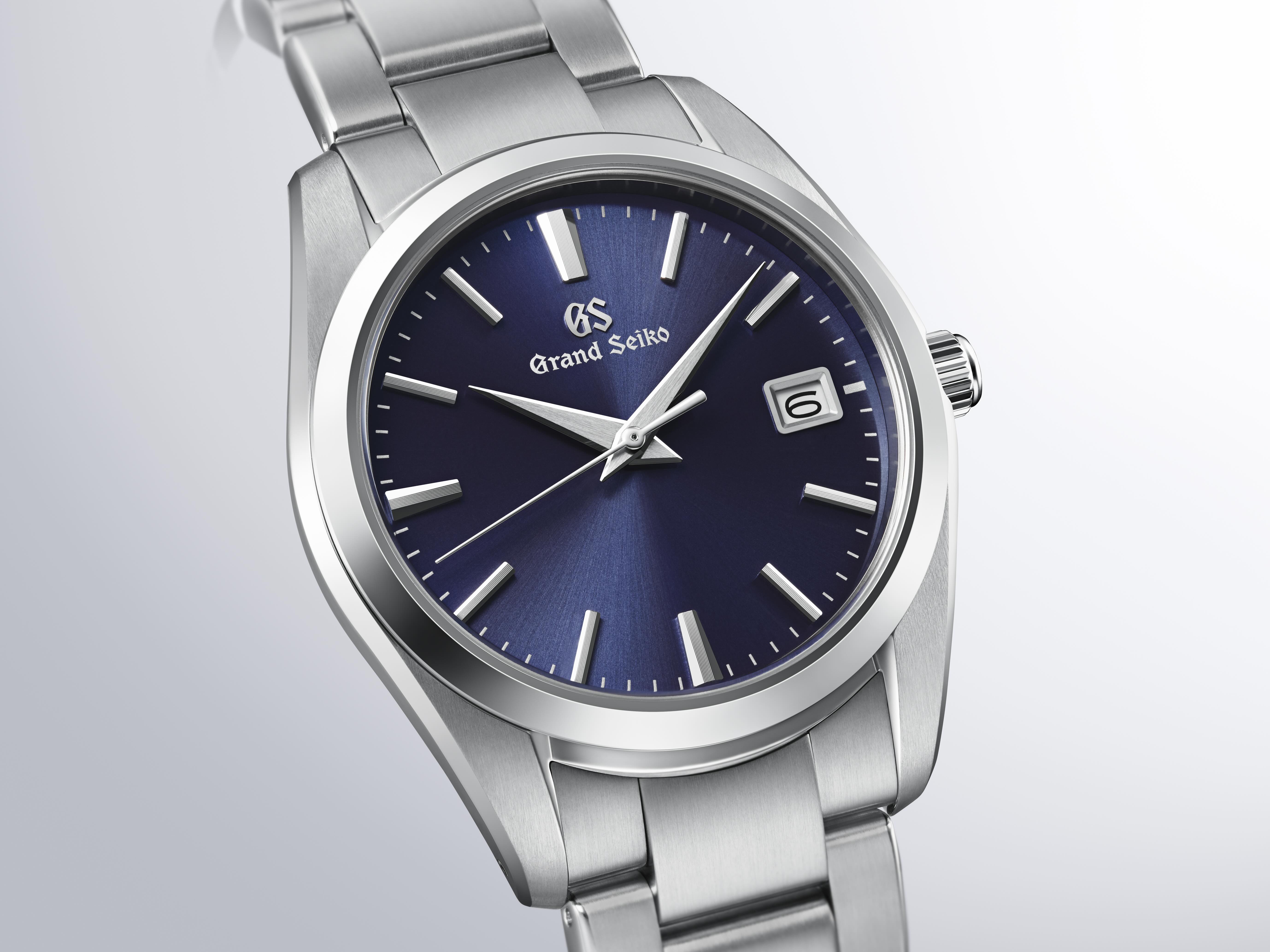 En termes de précision, ce calibre bénéficie d'une précision impressionnante de ±10 secondes par an, rendue possible notamment grâ ce à ses oscillateurs à quartz de fabrication interne, ainsi qu'au circuit intégré à faible consommation d'énergie avec contrôle de la température, qui compense les fluctuations de la température ambiante pour garantir le plus haut niveau de stabilité. L'essentiel de Grand Seiko dans une montre en acier inoxydable de 37 mm : bien que simple dans sa conception, ce garde-temps reste complexe dans son exécution. Le quartz 9F, un calibre créé pour allier la précision possible d'une montre à quartz aux normes élevées de Grand Seiko, avait besoin d'un ambassadeur à sa hauteur. Bien que la majeure partie du boı̂tier en acier inoxydable soit brossée, ce qui lui confère un caractère sportif, la lunette et les bords du boı̂tier arborent des surfaces Zaratsu, polies pour obtenir une finition parfaite, semblable à un miroir, sans distorsion. La montre est associée à un bracelet en acier inoxydable à trois maillons, entièrement brossé avec des côtés polis, et sécurisé par une boucle déployante à trois volets. Le cadran soleillé est revêtu de bleu, révélant de subtils reflets violets aux yeux de celui qui le porte. Les index à multiples facettes se distinguent par deux techniques de finition différentes, leur permettant de capter la lumière sous tous les angles et d'assurer une lisibilité optimale sur le cadran bleu. Le même principe optique est appliqué aux aiguilles, dont les arrêtes sont polies et la surface supérieure brossée, offrant un contraste parfait avec le cadran.