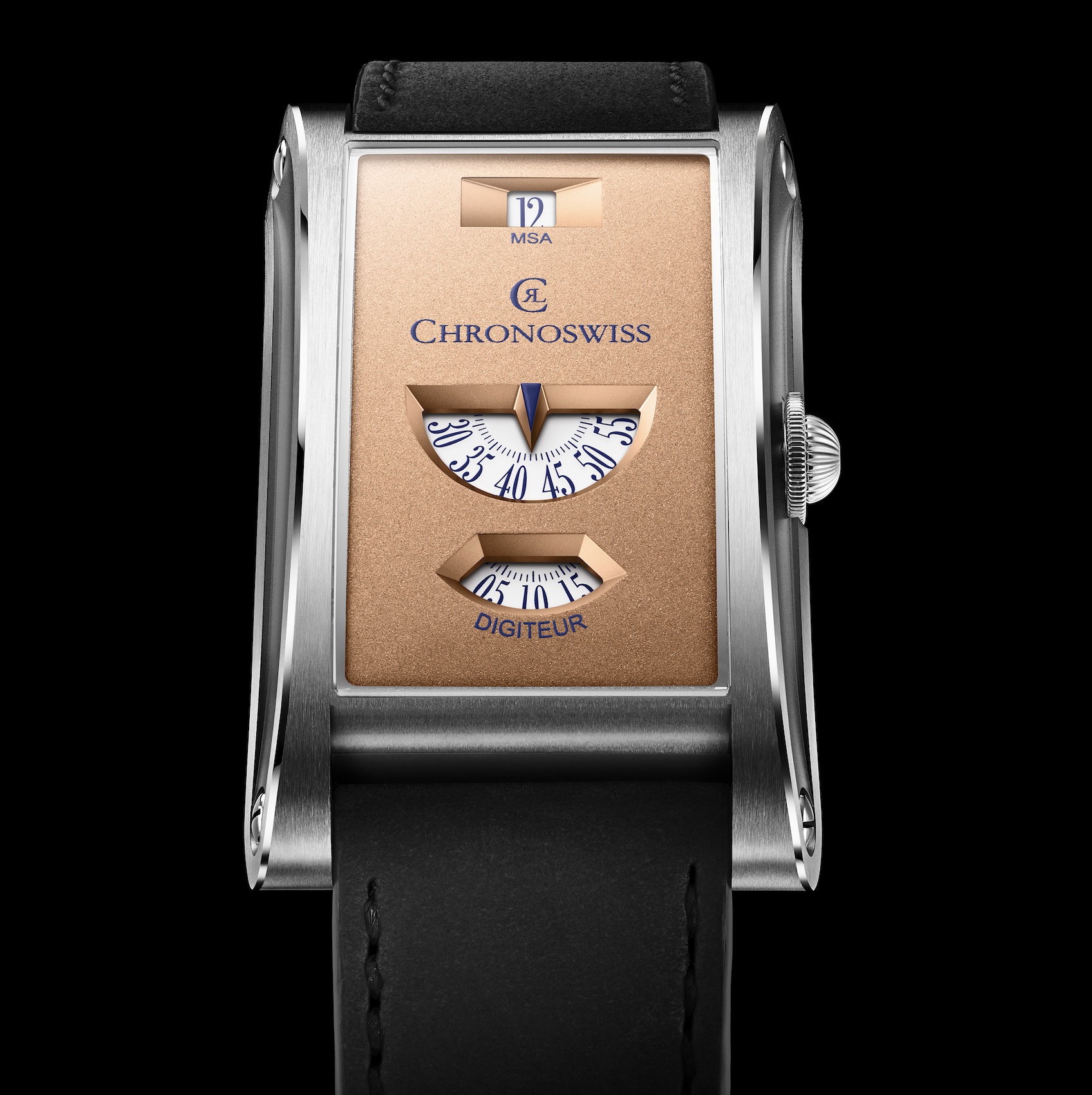 Vingt ans après ses débuts, Chronoswiss présente la Neo Digiteur, un hommage réinventé à l’original emblématique du début des années 2000 créé par le fondateur Gerd-Rüdiger Lang. Conçue entre inspiration vintage et rébellion mécanique, la Digiteur n’a jamais été une simple montre. C’était un défi lancé aux conventions. Une montre numérique mécanique. Une montre sans aiguilles. Une déclaration. La Neo Digiteur puise ses racines dans l’âge d’or de l’innovation mécanique des années 1920 et 1930, une époque où les montres à affichage numérique et à heures sautantes offraient une nouvelle façon futuriste de lire l’heure. Ces montres sans aiguilles ont fusionné l’ingénierie de précision avec une esthétique audacieuse et sont devenues des icônes de style et de progrès. C’était une époque à l’aube du changement, un esprit qui allait plus tard inspirer Chronoswiss. En 2005, Gerd-Rüdiger Lang a réinterprété cet héritage avec la Chronoswiss Digiteur originale. Il s’agissait d’une montre-bracelet entièrement mécanique, sans aiguilles, qui ne ressemblait à rien d’autre sur le marché. La Digiteur a combiné un savoir-faire horloger rare avec une esthétique résolument non conventionnelle. Logée dans un boîtier rectangulaire sur mesure et animée par un mouvement Fleurier historique, elle a été produite en série limitée de 999 pièces fabriquées exclusivement en métaux précieux. Aujourd’hui, deux décennies plus tard, Chronoswiss reprend l’esprit du Digiteur et le propulse dans l’ère de la mécanique moderne. Plus nette, plus élégante et plus raffinée sur le plan technique. Ce qui distingue immédiatement la Neo Digiteur, c’est son boîtier, une forme rectangulaire audacieuse, architecturale et sur mesure. La silhouette en forme de tonneau, fidèle à l’esprit de l’original, a été entièrement repensée par l’équipe de design de l’Atelier Lucerne. Avec ses lignes affirmées et son profil prononcé, le boîtier est à la fois sculptural et facile à porter. Un segment horizontal sablé sur le côté du boîtier ajoute de la légèreté et du contraste à la géométrie structurée, tandis que les bords polis affinent l’interaction visuelle. La fonction rencontre la forme dans une couronne redessinée. Une interprétation contemporaine de la forme traditionnelle de l’oignon, désormais aplatie sur la face inférieure pour améliorer à la fois l’ergonomie et la cohérence du design.
