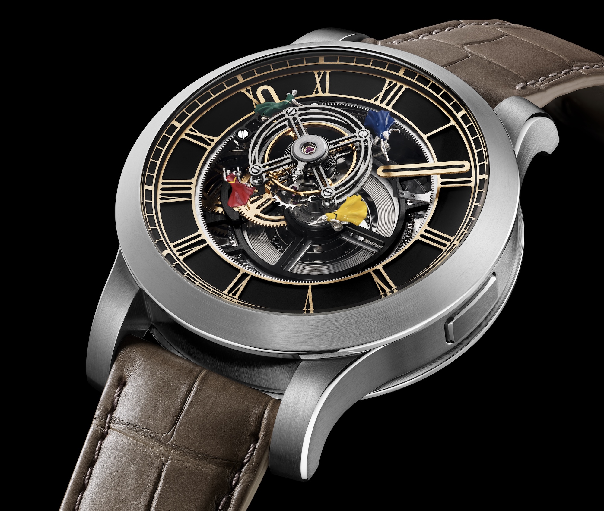 UN COMMENTAIRE ? Beaucoup de bonnes idées dans ce tourbillon « Harry Potter » complété par une boîte à musique Reuge : le résultat est effectivement très générationnel pour les adulescents qui pourront poser la table les 120 000 francs suisses nécessaires pour profiter tant de la musique que de cette partie de Quidditch et de la poursuite des quatre jeunes sorciers autour du tourbillon central (boîtier assez épais en titane de 42 mm x 19,8 mm glace comprise, étanche à 30 m et mécanisé par un mouvement à remontage manuel dont le tourbillon peut… tourbillonner pendant les cinq jours de la réserve de marche – le tout dans une édition limitée de dix montres). Une montre… magique, tout simplement !
