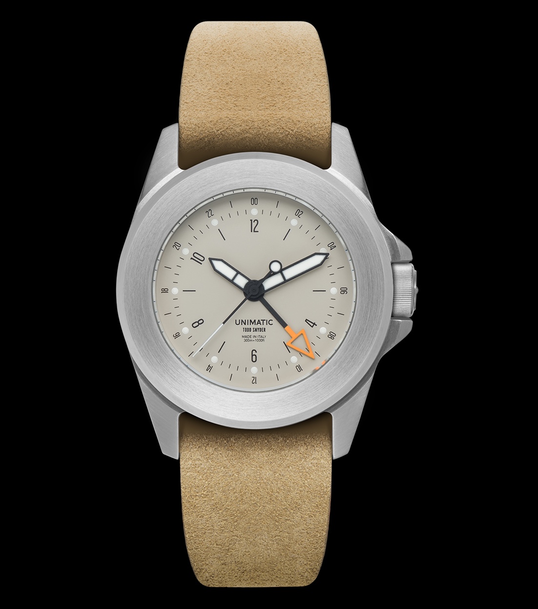 Snyder a travaillé main dans la main avec Moro sur le design. Fabriquée à la main en Italie, cette Modello Quattro U4 est une montre de style militaire équipée d'un mouvement GMT automatique. Alliant un look robuste mais élégant à une fonctionnalité pratique, elle est dotée d'un boîtier en acier inoxydable de 40 mm et d'un cadran assorti dans des couleurs personnalisées inspirées de la nuit (noir) et de la lumière du jour (crème). Les index Super-LumiNova brillent dans le noir et elle est montée sur un bracelet en daim texturé à dégagement rapide de couleur personnalisée. À l'intérieur, un mouvement GMT automatique NH34A garantit une heure précise (-20/+40 secondes par jour) avec une réserve de marche de plus de 41 heures. De plus, elle est livrée avec un étui de transport résistant aux chocs et étanche. Moro et Nunziato, tous deux anciens designers industriels, apportent leur sens du design élégant et leur passion pour la fonctionnalité à ce produit spécial. « Nous sommes ravis et fiers d'annoncer deux nouvelles montres en édition limitée issues de notre collaboration avec Todd Snyder. Ce projet nous a permis de développer davantage notre ADN commun, en fusionnant les visions de Todd et d'Unimatic », déclare Giovanni Moro, cofondateur d'Unimatic. « Cette collaboration transatlantique nous a également donné l'occasion idéale de mettre en avant la fonction GMT de ces montres Modello Quattro. »