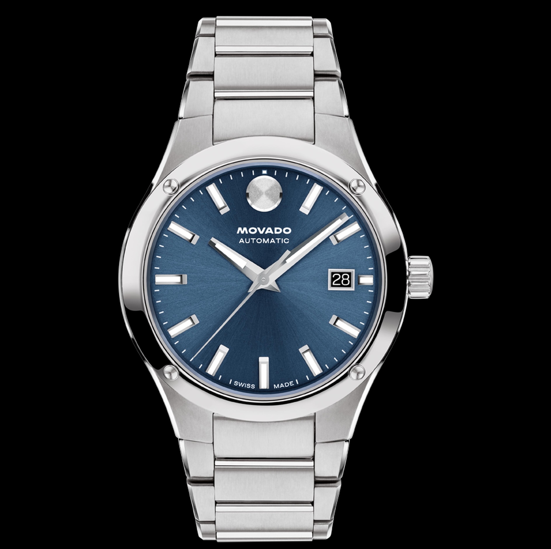 UN COMMENTAIRE ? Il faut compter un peu moins de 2 000 euros pour cette montre au boîtier en acier de 40 mm, étanche à 100 m et animée par un mouvement automatique suisse disposant de 41 heures de réserve. On appréciera cette réinterprétation moderne de l’iconique montre Museum de Movado (créée en 1981), dans une édition nourrie des codes contemporains du « sport chic » (bracelet métallique intégré, lunette ponctuée de « points » quI rappellent le « point » emblématique du cadran, cadran soleillé bleu, etc.). Héritage et avant-garde : une des meilleures recettes Swiss Made de 2026 ?