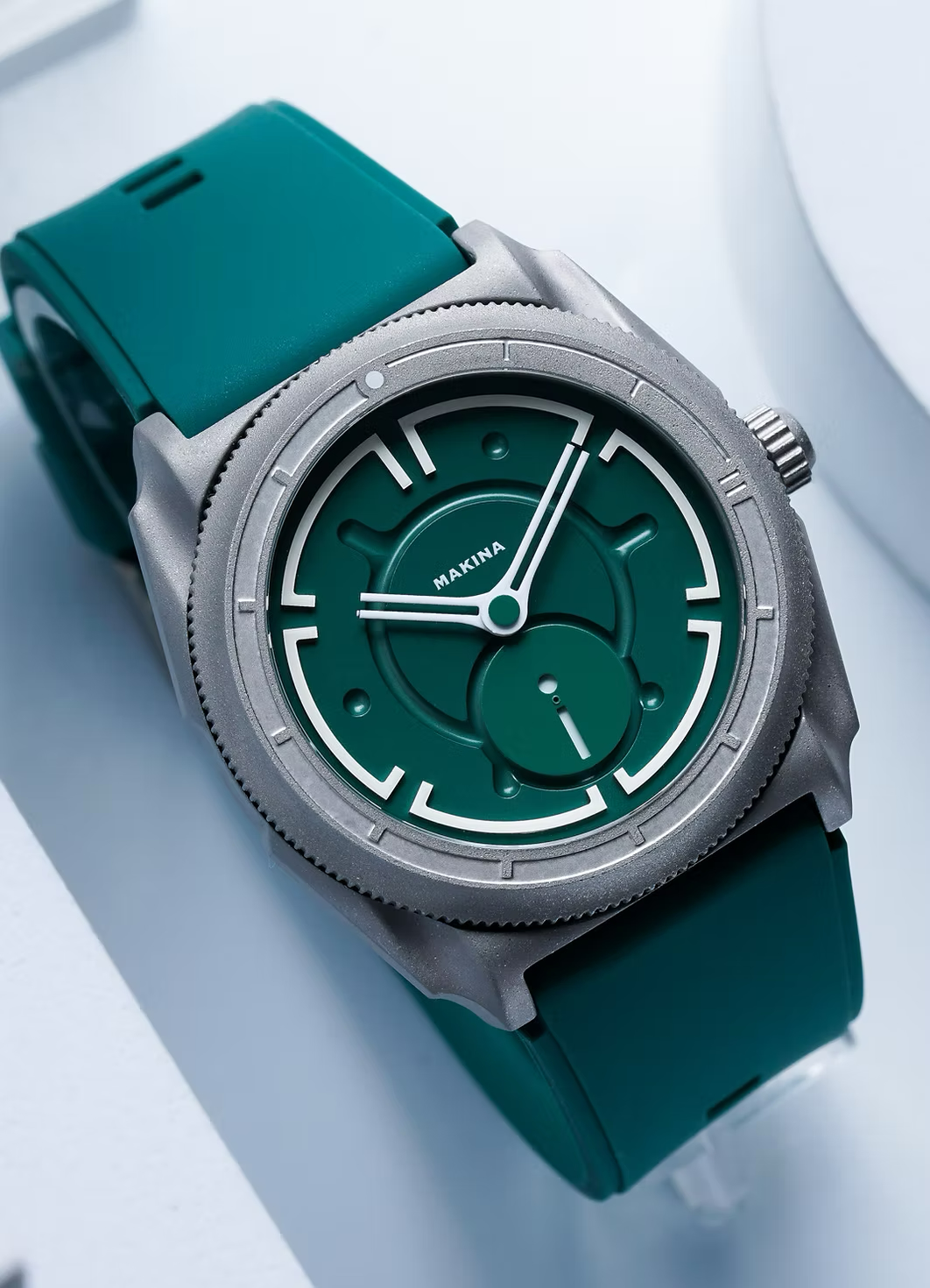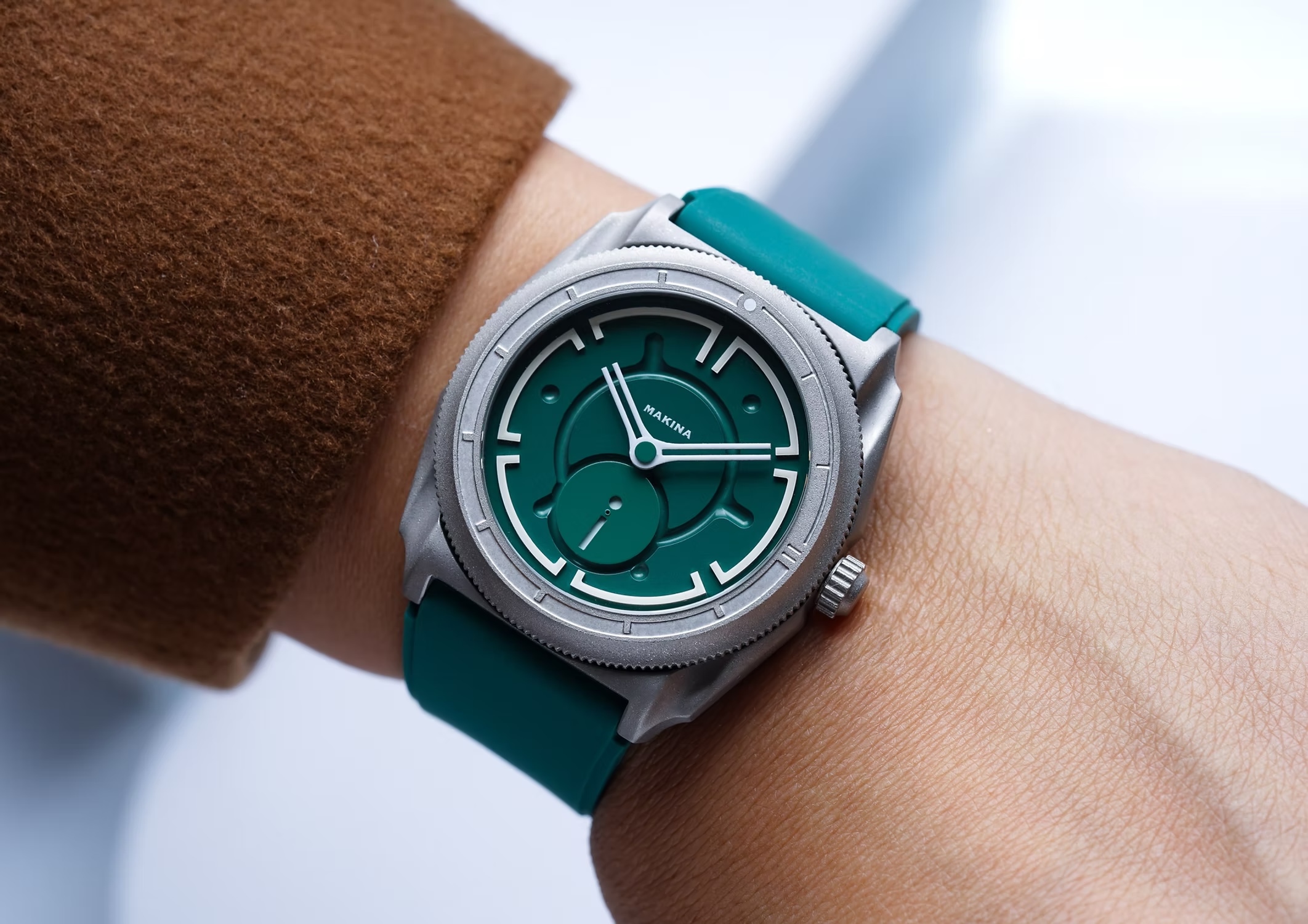 Associé à un bracelet en silicone durable, Azazel_I reste à l'aise pour les trajets plus longs - où que vous soyez. Géométrique et non conventionnel dans sa mise en page, il joue avec des surfaces en couches et un espace négatif pour créer quelque chose de familier, mais pas tout à fait. À 6, un disque rotatif sert d'indicateur de secondes - un mouvement silencieux et continu qui ajoute au sentiment de profondeur et de tension du cadran. De nouveaux modèles de main font leurs débuts ici, faisant allusion à ce qui est à venir dans les futurs modèles Makina. Et avec des détails lumineux partout, Azazel_I reste visible lorsque la lumière disparaît - car tout ne se termine pas au coucher du soleil. À l'intérieur d'Azazel_I se trouve le Sellita SW260-1 - un mouvement automatique suisse avec un petit affichage de secondes qui alimente le disque rotatif à 6 heures. Fonctionnant à 28 800 battements par heure, il offre un mouvement fluide, une réserve de marche de 38 heures et des éléments essentiels modernes comme le piratage et l'enroulage manuel. Fiable, précise et conçue pour durer - c'est le rythme cardiaque mécanique d'une montre conçue pour être portée durement.