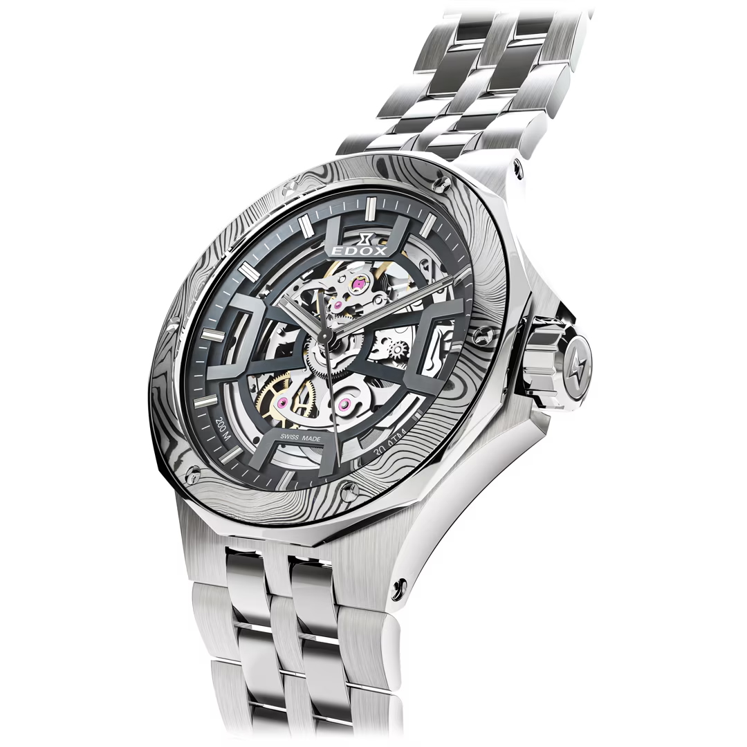 Il semblerait qu’Edox, maison suisse dont les ateliers sont situés dans le Jura francophone suisse (Les Genevez), ne souhaite pas communiquer en français sur cette montre, alors que la communauté des locuteurs francophones représente 150 millions de personnes à moins de trois heures d’avion du Jura suisse. Nous respectons cette volonté en ne présentant pas cette montre en français à nos lecteurs francophones…