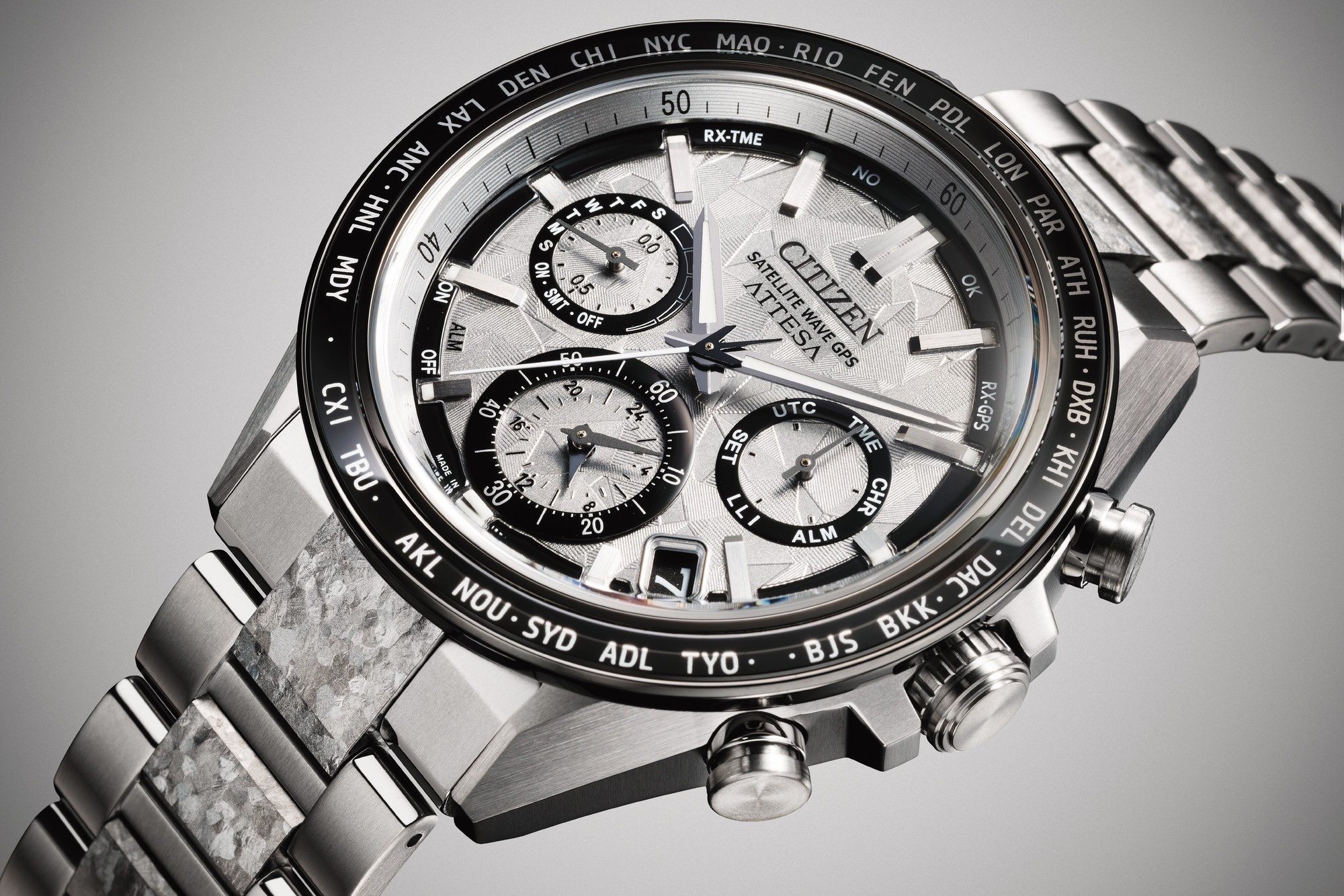 Attesa lance trois nouveaux modèles passionnants de sa collection Citizen Attesa équipés des dernières technologies. Ces nouveaux modèles en édition limitée sont dotés de titane recristallisé, un matériau unique avec des motifs cristallins distinctifs développés par Citizen. Les modèles de ces modèles Platinum Shine Collection utilisent Duratect Platinum pour exprimer la douce lueur de la lune argentée qui brille dans le ciel nocturne. Le titane recristallisé est un matériau créé en appliquant un traitement thermique à haute température suivi d'un processus de refroidissement. Cela crée une inégalité dans la composition du métal, produisant des motifs cristallins uniques à la surface. Chaque motif de cristal est unique à chaque montre, tout comme les motifs sur les minéraux que l'on trouve dans la nature. La création de titane recristallisé est un processus complexe, et un haut niveau d'expertise technique est nécessaire pour traiter le matériau à mesure qu'il se développe en réponse au traitement à haute température. 2025 marque le 55e anniversaire du lancement de la première montre en titane de Citizen au monde. Ces modèles spéciaux en édition limitée présentent l'aspect unique du titane recristallisé sur le maillon central du bracelet. Les étuis et les bracelets des trois nouveaux modèles sont fabriqués en Super Titanium traité avec Duratect Platinum, créant une couleur argentée brillante attrayante qui contraste magnifiquement avec la couleur noire brillante de Duratect DLC sur la lunette. Le cadran présente un motif en cristal imprimé à l'encre métallique sur le cadran, et les aiguilles et index sophistiqués de couleur argent se combinent avec l'anneau intérieur assorti pour produire l'image d'une pleine lune lumineuse. Le CC4076-65A est équipé du mouvement F950 de Citizen, le mouvement ultime pour les montres GPS à ondes satellites Eco-Drive à puissance légère. Ce modèle est capable de recevoir des signaux de temps en aussi peu que 3 secondes - la réception de signaux satellite GPS la plus rapide au monde, et les aiguilles des heures et des minutes se déplacent rapidement pour afficher l'heure correcte. Les codes de la ville sont imprimés en argent étincelant sur la lunette en saphir noir brillant. Les modèles AT8284-61A et CB0284-66A sont des montres radiocommandées Eco-Drive équipées d'un vol direct qui permet un réglage facile de l'heure et de la date dans 26 fuseaux horaires avec juste une torsion de la couronne.