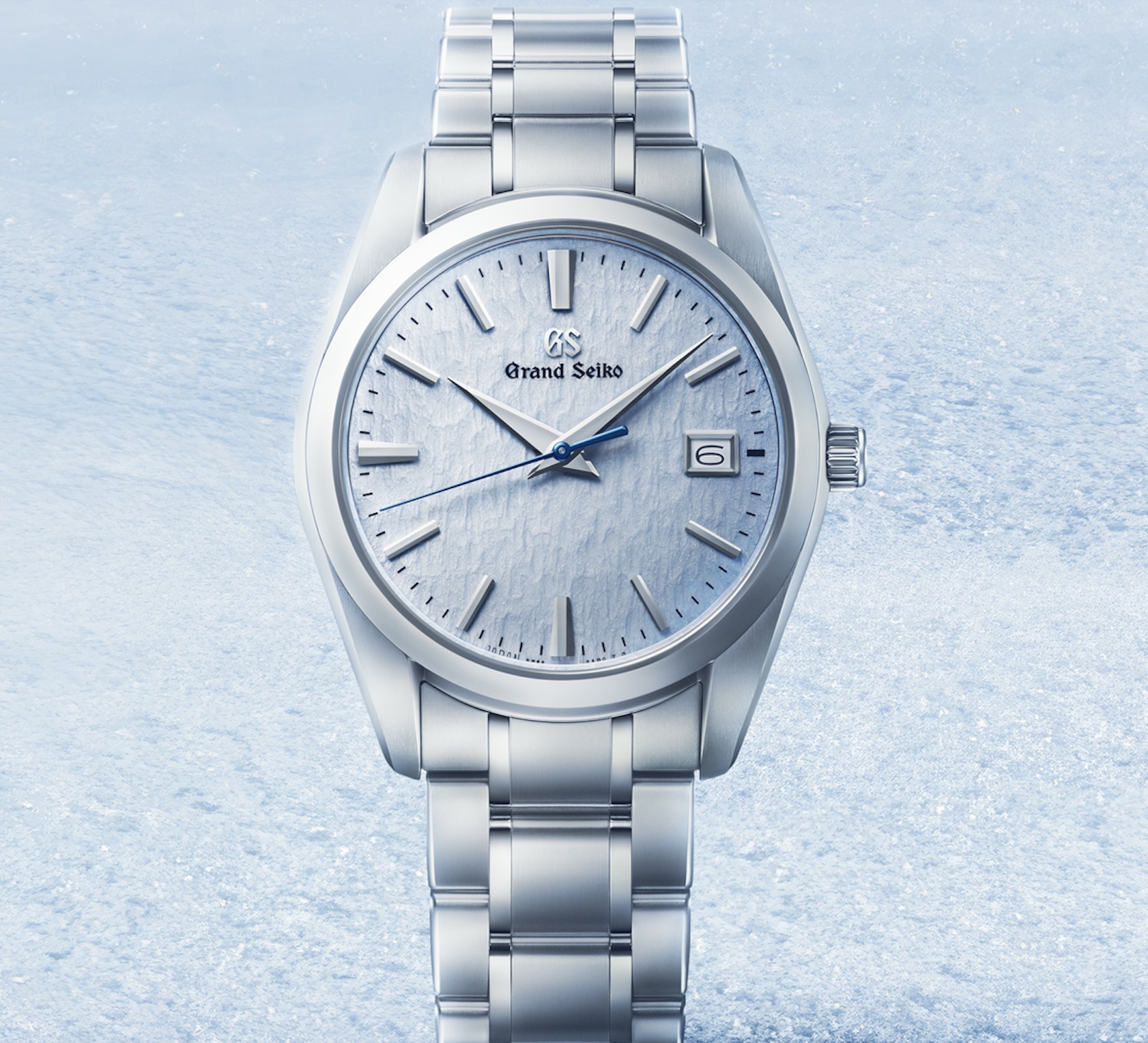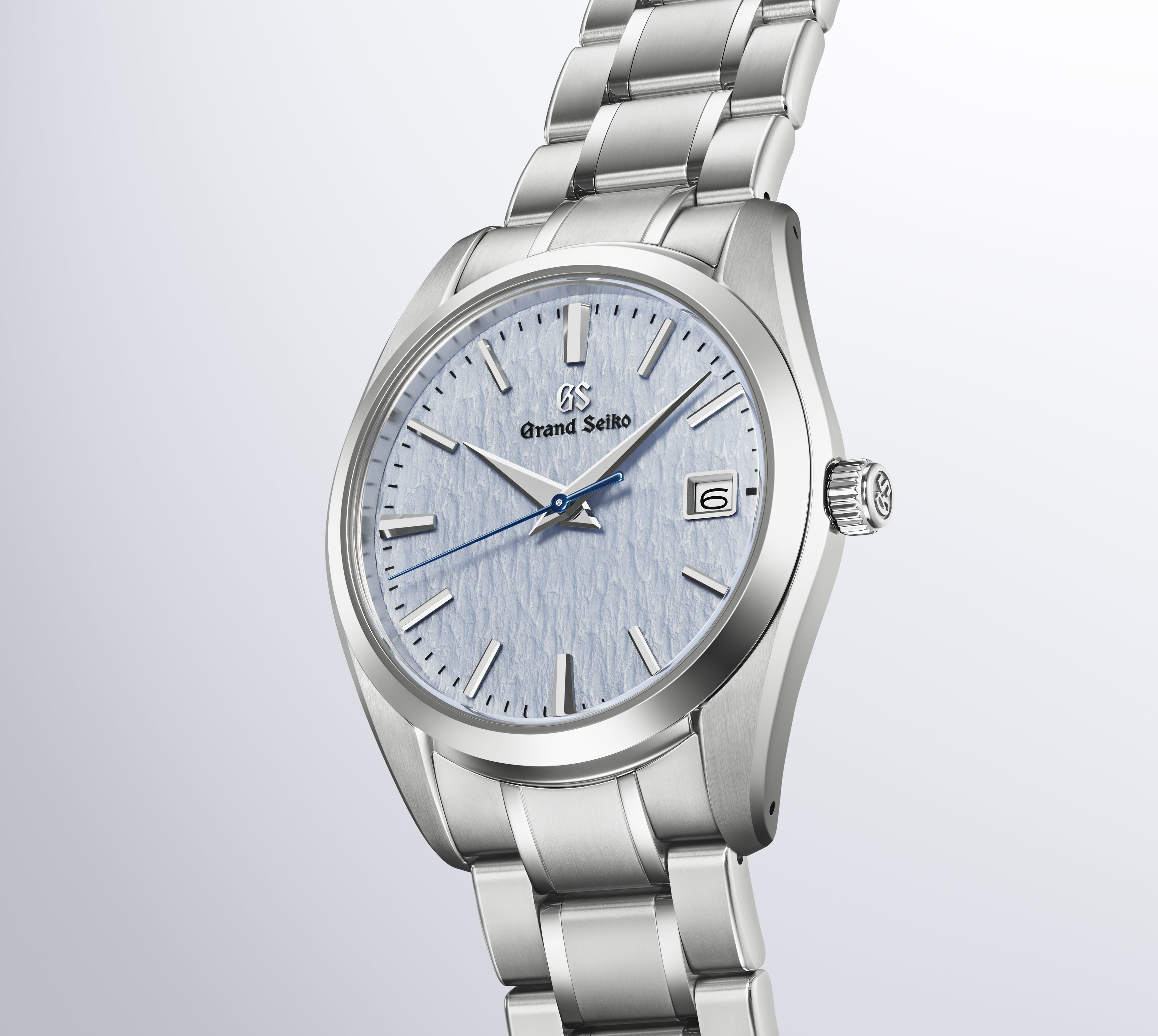 En 2019, la collection Elegance a accueilli une variante bleu ciel du cadran à motif « flocon de neige » très apprécié. Le modèle « Skyflake » était né. Aujourd'hui, le Shinshu Watch Studio de Grand Seiko présente une version de 37 mm dans la collection Heritage, réalisée en High-Intensity Titanium exclusif à la marque et animée par le calibre 9F62 d'une grande précision. Lancé en 2005, le motif « flocon de neige », désormais emblématique, évoque la neige fraı̂che dont la surface est façonnée par les vents violents qui soufflent pendant les hiversrigoureux dans la chaı̂ne de montagnes Hotaka, visible depuis le Shinshu Watch Studio. Initialement associé au calibre 9R Spring Drive, ce cadran est devenu un symbole des créations Grand Seiko. Il est apparu pour la première fois sur une montre à quartz 9F en 2024, et se pare désormais de tons bleu ciel. Pour une lisibilité optimale, les index et les aiguilles sont multifacettes et polis miroir, ce qui renforce leur contraste avec le cadran. L'aiguille des secondes en acier, trempéeindividuellement dans un bain bleu par des artisans quali:iés, se détache et complète cette harmonie. Le Shinshu Watch Studio, berceau de tous les mouvements Grand Seiko 9R Spring Drive, abrite également les calibres à quartz 9F exclusifs de la Maison.