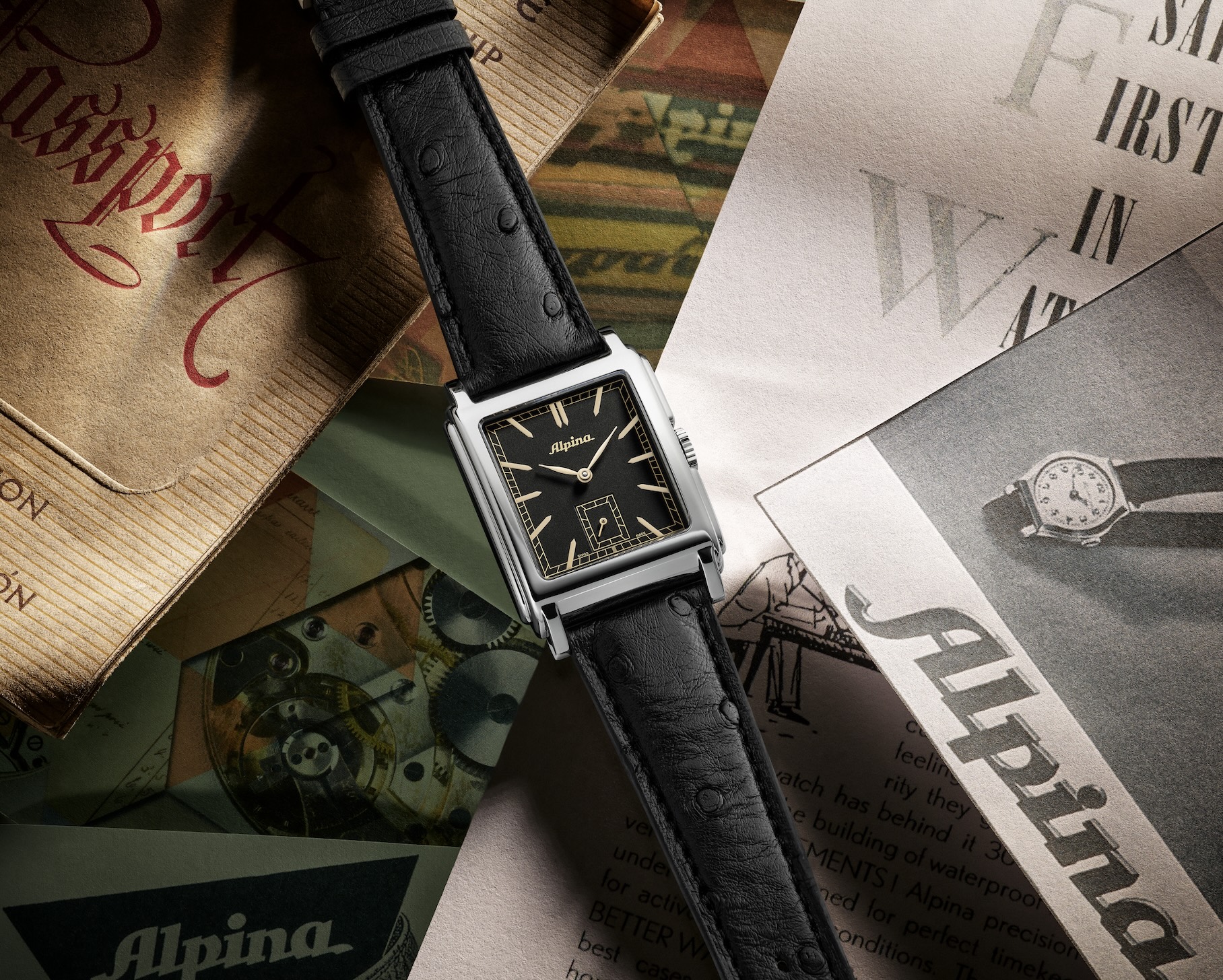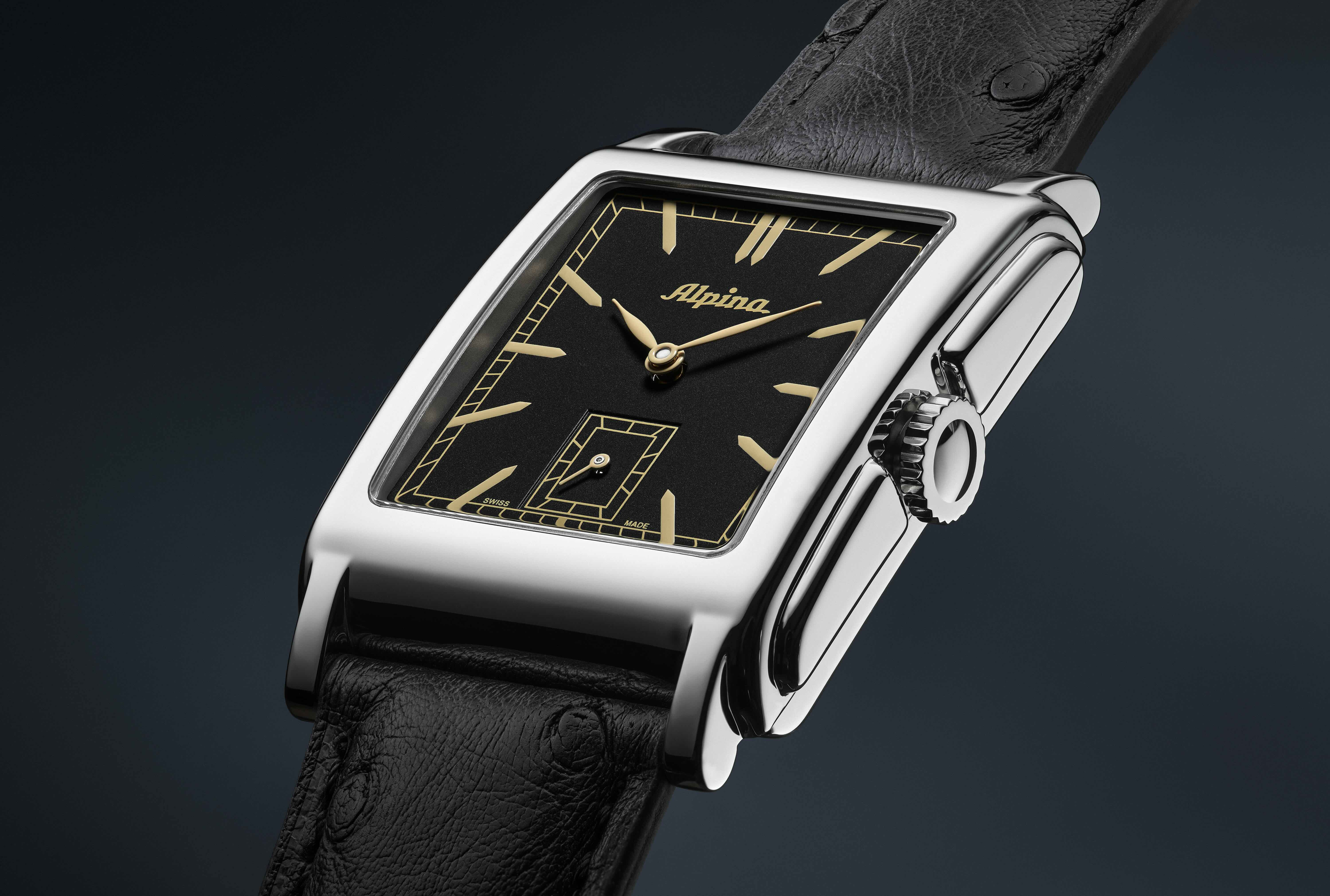 Aujourd’hui, cette pièce se dote d’un mouvement automatique offrant toutes les garanties de robustesse et précision d’une montre moderne, au sein d’un combo boîte & cadran qui exprime une égale exigence de finition et d’élégance. Cette déclinaison reprend l’esthétique du modèle original, avec les optimisations qui lui permette de s’adapter aux nécessités du quotidien moderne. Son boîtier a été légèrement élargi, de trois millimètres en moyenne, tout en restant dans les proportions d’époque, avec 32,5 x 39 mm de diamètre, pour seulement 9,71 mm de hauteur. La silhouette est élégante, idéale pour les hommes comme pour les femmes. Pour des raisons de facilité d’usage et d’entretien au jour le jour, cette boîte est en acier inoxydable, avec un verre saphir convexe anti-reflets. Le calibre mécanique à remontage automatique AL-530 qui s’y niche, conçu et optimisé au XXIe siècle, visible par le fond ouvert, est garant de 38 heures de réserve de marche et cadencé à 28'800 alt./h. Cette montre affiche les heures, minutes et petite seconde, le logo Alpina d’époque, la minuterie « chemin de fer » et se porte sur un bracelet autruche à boucle ardillon. Elle affiche néanmoins une identité propre. Son cadran est noir, orné d’index bâtons avec une petite seconde rectangulaire et des aiguilles beiges. Une étonnante constitution, forte et singulière, qui fait la part belle à l’élégance d’antan, aujourd’hui passée dans les mœurs mais largement définie par Alpina, maison créée en 1883.