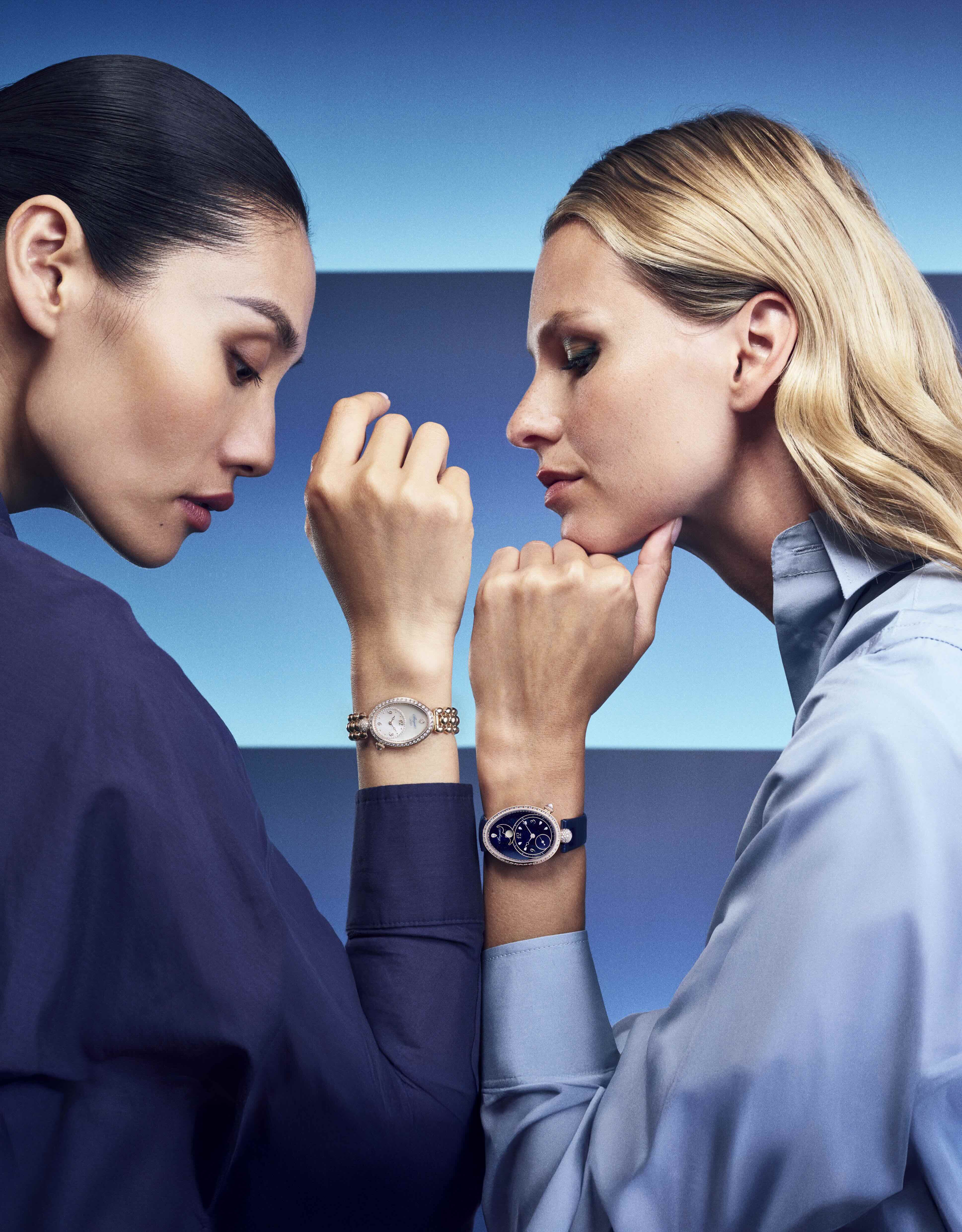 Pour le 250e anniversaire de la Manufacture Breguet, la collection Reine de Naples est enrichie de nouveaux modèles portant les références 9935 et 8925. Les premières bénéficient d’un nouveau mouvement, d’un affichage inédit et de nombreux apports esthétiques exclusifs. Les secondes se dotent d’un nouveau visage et d’un bracelettout en or. Chacune de ces références se pare pour la première fois de l’or Breguet. Ces montres versatiles, conçues comme des bijoux, deviennent le compagnon idéal de chaque instant, tout au long de la journée et au fil des activités. La collection Reine de Naples trouve soninspiration dans la pièce réalisée de 1810 à 1812 pour Caroline Murat. La sœur de l’empereur Napoléon 1er, devenue par la suite Reine de Naples, était collectionneuse de multiples créations signées Breguet. Ledessin original de la montre n’existe plus, mais le registre provenant des ateliers du Quai de l’Horloge nous renseigne sur deux éléments fondamentaux. En premier lieu, sa forme oblongue, qui a inspiré lacollection contemporaine. En second lieu, qu’il s’agissait expressément d’une montre-bracelet, ce qui en fait probablement la première, conçue comme telle, de l’histoire de l’horlogerie. Breguet réaffirme ainsi son lien historique avec la clientèle féminine. Depuis ses origines, la Maison a imaginé des créations pour les femmes, de la première montre-bracelet à la légendaire montre de poche dite « Marie-Antoinette », considérée durant près d’un siècle comme la plus compliquée au monde. Fidèle à cet héritage et toujours attentive aux envies de ses clientes, Breguet enrichit aujourd’hui cette ligne emblématique avec un bracelet inédit, créé pour les nouvelles références anniversaire 8925 et 9935.