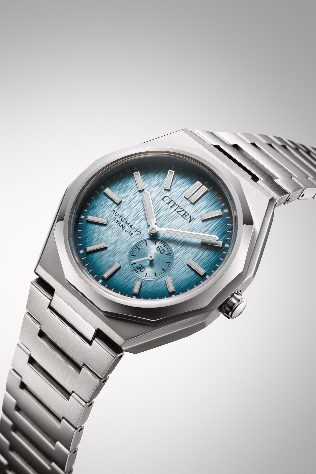 La collection Zenshin (qui signifie « aller de l'avant » en japonais) incarne ces qualités dans une montre entièrement réalisée en Super Titanium : légère, hypoallergénique, robuste et hautement résistante aux rayures, elle se prête parfaitement à un usage quotidien. Cette nouvelle série se décline en quatre versions mettant en valeur un nouveau design de lunette dodécagonale et des cadrans texturés aux luxueux dégradés de couleur – turquoise, bleu, sable et vert. Montés sur un boîtier de 40,5 mm, son affichage de la petite seconde décentrée,placé entre 4h et 5h, confère à ce modèle une signature visuelle unique.La collection Zenshin est dotée du mouvement automatique calibre 8322, offrant une réserve de marche de 60 heures, visible grâce à un fond en verre saphir. Elle est également pourvue d’une étanchéité jusqu’à 100 m. Les montres Zenshin incarnent le savoir-faire horloger de Citizen, conçues pour allier performance, fiabilité et style.
