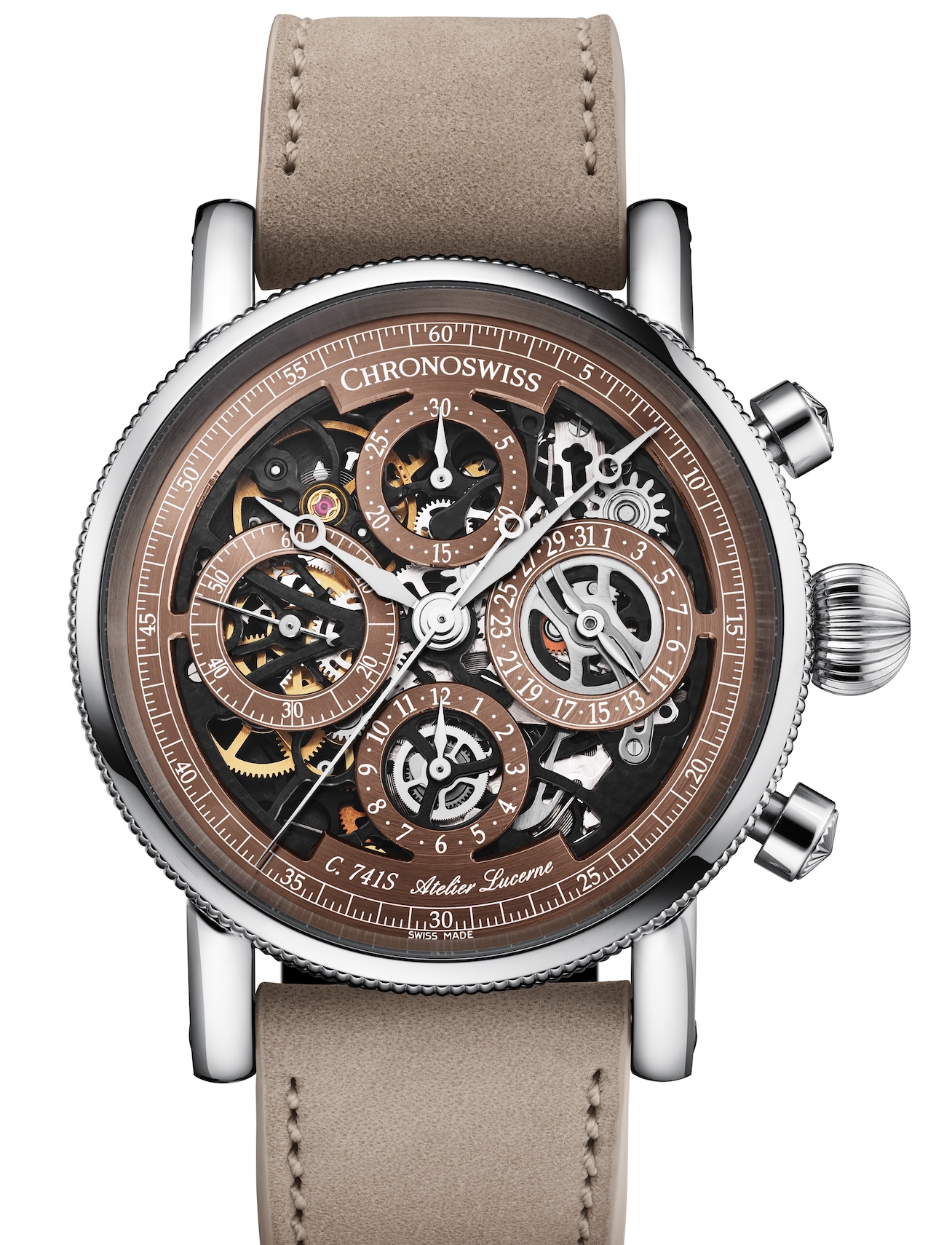 Alors que la Chronoswiss Opus fête ses 30 ans, le voyage se poursuit, maintenant dans la vaste immobilité et la chaleur dorée du désert avec l’Opus Dakar, un hommage à la résilience mécanique, à la beauté élémentaire et à l’esthétique épuré de la terre et de la lumière. Son nom s’inspire de la palette de tons chauds de la région : ancrée, durable et silencieusement puissante. L’Opus Dakar est synonyme de chronométrage en rythme, en silence, dans une clarté mécanique brute.L’Opus Dakar est logée dans un boîtier en titane de grade 5 de 41 mm, léger, pur et spécialement conçu. Son cadran brun squeletté à revêtement CVD irradie de chaleur, tandis que la mécanique ouverte en dessous projette des ombres changeantes et une profondeur subtile. Associée à un bracelet en cuir nubuck de couleur sable, la composiBon reflète l’esprit du désert : baignée de soleil, sophistiquée et riche en texture. Ce n’est pas une montre qui crie. Elle résonne, comme la chaleur qui émane de la pierre, comme le temps qui retentit dans le silence. À l’intérieur bat le calibre de chronographe automatique Chronoswiss C.741S, fini en noir galvanique et entièrement squeletté. Chaque élément est exposé : les secondes centrales, les compteurs 30 minutes et 12 heures, la date analogique et les petites secondes, tous disposés dans la célèbre configuration 3D ajourée. L’Opus Dakar conserve l’ADN du design qui a fait de l’Opus original de 1995 une révolution horlogère, tout en l’affinant grâce à des matériaux modernes et à un sens tactile de la retenue. La couronne en forme d’oignon, la lunette moletée et le mouvement squelette architectural sont toujours présents, mais ont été réinventés dans des tons chauds et un contraste naturel. Faisant parBe de la collection du 30e anniversaire de l’Opus, l’édition Dakar n’est pas un renouveau, c’est une évolution. Une déclaration mécanique façonnée par les éléments. Un chapitre d’un héritage qui continue de remettre en question la façon dont le temps est vu, porté et compris.