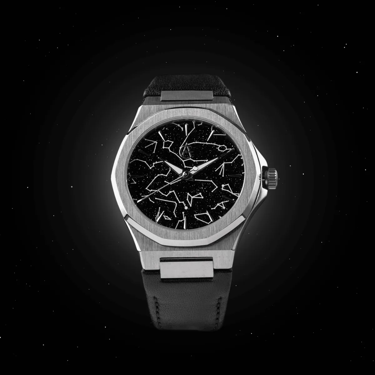 Chez ChronoAstra, nous ne nous contentons pas d'imprimer un cadran, nous recréons votre moment précis dans le temps. À l'aide des données stellaires précises de la NASA, nous cartographions les constellations exactement telles qu'elles apparaissaient à l'endroit, à la date et à l'heure que vous choisissez : qu'il s'agisse de la naissance de votre enfant, d'un anniversaire ou de tout autre moment que vous chérirez pour toujours. Chaque cadran est vraiment unique : nos horlogers créent un moule d'impression tampographique sur mesure, rien que pour vous. Ce processus est normalement réservé à plus de 500 cadrans identiques, mais ici, il n'est utilisé qu'une seule fois, pour le vôtre. Cela garantit la plus haute résolution et la carte stellaire la plus précise possible. Une carte digne de votre histoire : vos constellations ne sont pas immobiles, elles sont réalisées avec du BGW9 Swiss Super-LumiNova, de sorte que chaque étoile de votre cadran brille doucement en bleu dans l'obscurité, comme le vrai ciel nocturne au-dessus de vous. Chaque étoile est cartographiée à la seconde près, avec des constellations lumineuses qui s'illuminent dans la nuit.