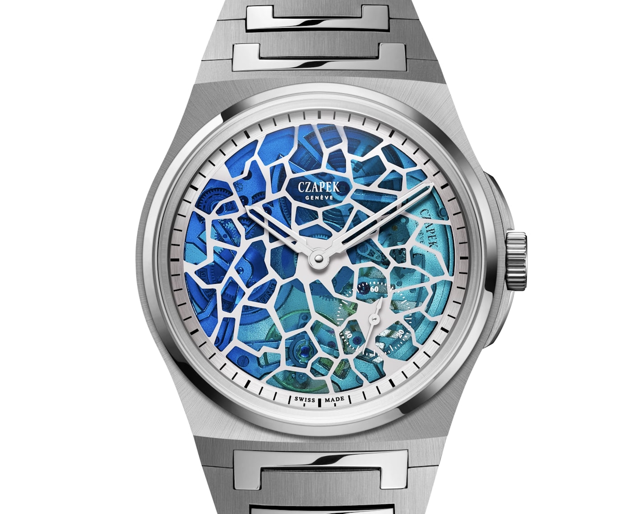 Czapek & Cie présente la deuxième des quatre créations réalisées pour célébrer le dixième anniversaire de sa renaissance. L’Antarctique Plique-à-Jour est une édition limitée à dix pièces qui unit le langage horloger contemporain de la maison à l’une des techniques d’émaillage traditionnelles les plus complexes. Depuis sa relance en 2015, Czapek & Cie a bâti son approche créative autour d’une idée simple mais exigeante : faire dialoguer l’artisanat traditionnel avec une vision contemporaine de l’horlogerie. L’Antarctique Plique-à-Jour poursuit cette exploration en appliquant un art décoratif ancien, habituellement réservé à la joaillerie ou aux objets d’art, à une montre moderne en acier à bracelet intégré. « Czapek a toujours cherché à explorer les métiers d’art et à les réinterpréter à travers un design moderne et des techniques novatrices », explique Xavier de Roquemaurel, CEO de Czapek & Cie. « Ce projet vise à préserver un savoir-faire artisanal rare tout en lui donnant une impulsion nouvelle. » Le plique-à-jour — littéralement « laisser passer la lumière » — est l’une des formes d’émaillage les plus exigeantes, apparue dans l’Empire byzantin au VIe siècle. Elle consiste à appliquer des couches d’émail transparent et coloré dans des alvéoles métalliques ouvertes, sans fond. L’émail est ensuite cuit à environ 900°C, se liant à la structure métallique — généralement en or — tout en laissant filtrer la lumière. Le résultat évoque une miniature de vitrail, vibrant de reflets et de nuances. Seuls quelques ateliers dans le monde maîtrisent encore cet art, tant il requiert précision et patience. Les défis sont multiples : chaque couleur doit être soigneusement formulée pour obtenir la teinte et la transparence souhaitées après cuisson ; chaque alvéole du cadran doit être remplie individuellement, dans la bonne proportion et le bon ordre, afin d’obtenir des dégradés harmonieux ; l’émailleur doit ensuite maîtriser chaque étape de la cuisson pour éviter toute fissure due à la chaleur. Enfin, le polissage et l’ajustement de l’épaisseur exigent un travail délicat et progressif afin de préserver l’intégrité de l’émail. La transparence obtenue sur ce cadran révèle l’architecture interne du mouvement, créant un lien visuel direct entre l’art et la mécanique. « Ce qui rend ce cadran si extraordinaire et unique, c’est précisément sa transparence », explique Xavier de Roquemaurel. « En effet, contrairement à un émail plique-à-jour traditionnel, souvent légèrement opaque en raison des bulles d’air qui se forment dans l’émail, la technique utilisée pour l’Antarctique Plique-à-Jour permet une transparence totale. Le subtil dégradé de couleur ajoute une difficulté supplémentaire à ce qui était déjà un véritable tour de force. »