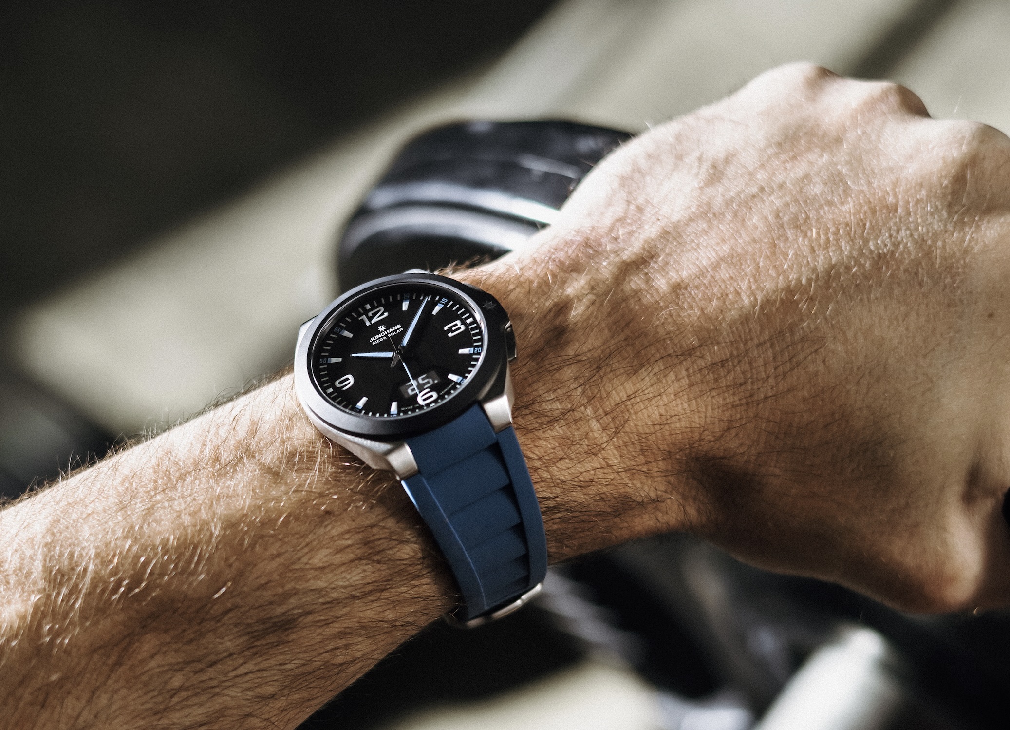 Fin octobre, il faut reculer les montres d’une heure. La nouvelle Junghans Spektrum Mega Solar le fait toute seule. Certains sont agacés, les amateurs de montres radio-pilotées Junghans restentimpassibles : Depuis 45 ans déjà, nous vivons avec un changement d‘heure saisonnier au printemps et en automne. Prochainement, dans la nuit du dernier dimanche d‘octobre (26 octobre), nous « gagnerons »à nouveau une heure - les montres seront reculés d’une heure. C‘est là qu‘une montre radio-pilotée Junghans comme la toute nouvelle Spektrum Mega Solar est utile. Elle adapte l’heure de manière autonome et très conviviale, grâce au signal horaire normalisé qu’elle reçoit. Haute précision et préservation des ressources : la Spektrum Mega Solar marque des points avec sa technologie de radio-pilotage haute précision et sa gestion moderne de l‘énergie. Elle tire son énergie de la force du soleil : une cellule solaire en verre alimente le mouvement radio-piloté à multifréquences de la montre, aussi précis que hautement efficace. Pour le reste, cette montre sportive est une Junghans typique – ultramoderne et fiable. Le boîtier remarquable est en acier inoxydable froid et mesure 41,6 millimètres. La lunette en céramique noir mat n‘est pas seulement un élément de design moderne, mais aussi une protection pratique de la partie supérieure du boîtier grâce à sa résistance aux rayures – complétée par un verre saphir également robuste.