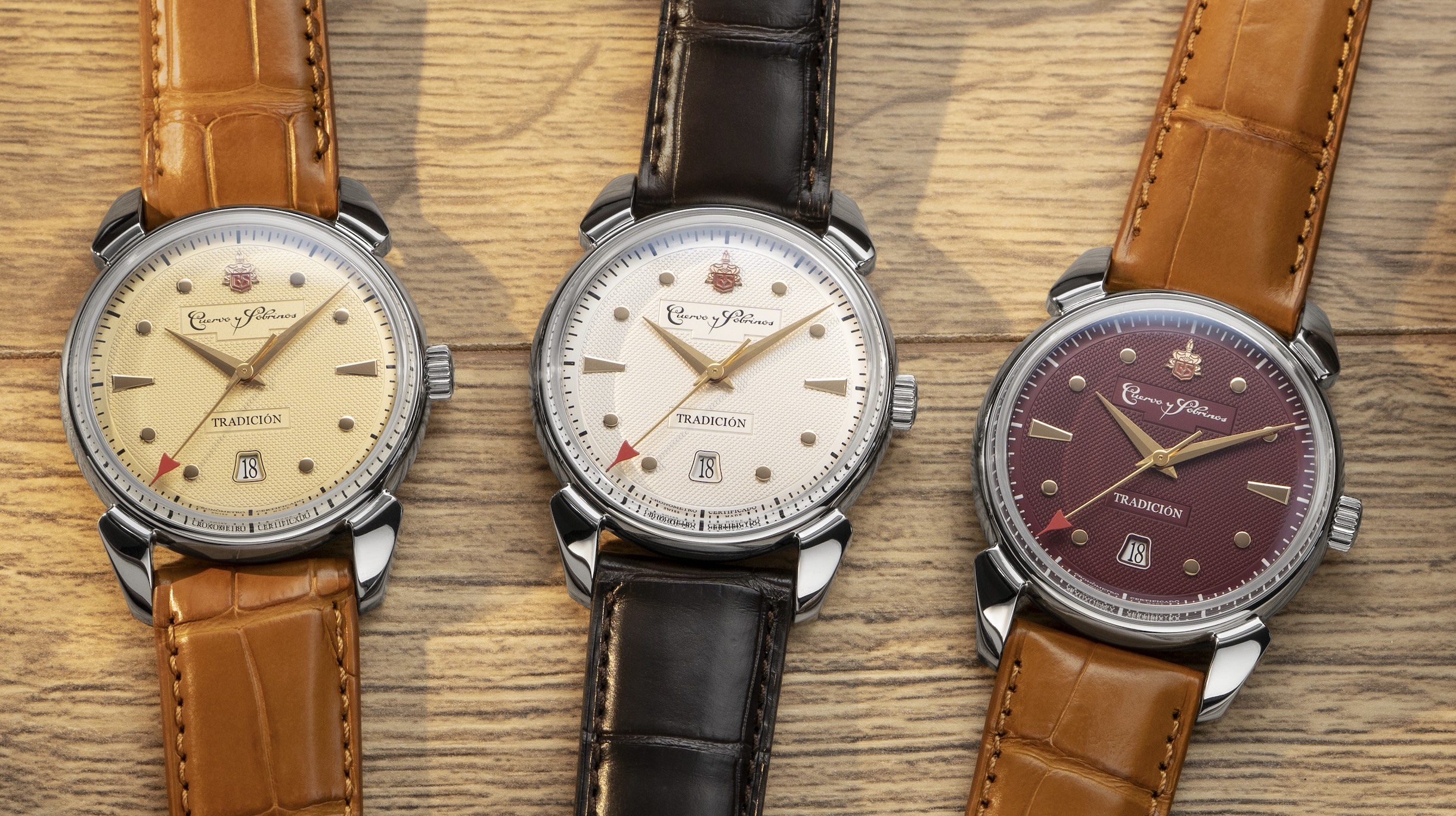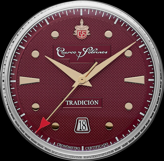 Le cadran reste fidèle à l’esthétique emblématique de Cuervo y Sobrinos, avec sa texture frappage et le double cartouche portant le logo historique de la Maison. Proposé en trois teintes raffinées — argent, champagne et bordeaux —, il marie subtilement tradition et audace. Un emblème intemporel de Cuervo y Sobrinos : la nouvelle Historiador Tradición incarne la philosophie durable de la Maison : allier design élégant et excellence technique. Avec son premier calibre certifié COSC, Cuervo y Sobrinos affirme une fois de plus son dévouement à l’héritage, à la précision et à l’art horloger suisse.