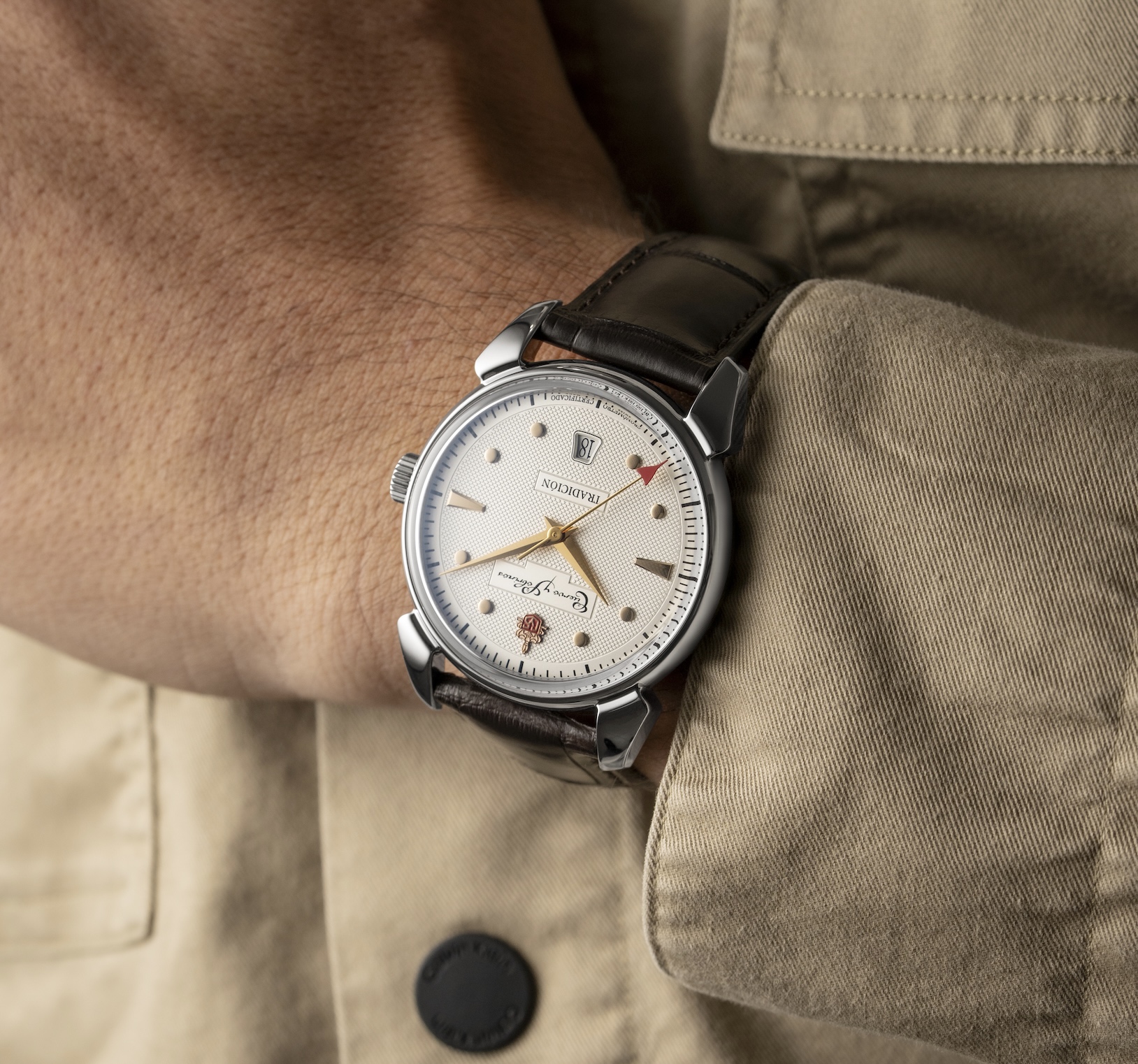 UN COMMENTAIRE ? Un restylage très réussi et une montée en gamme dans la qualité horlogère : avec son nouveau mouvement certifié COSC, la nouvelle Historiador Tradición n’en reste pas moins accessible, puisqu’elle est proposée aux alentours des 3 200 francs suisses (boîtier en acier de 40 mm x 12,3 mm d’épaisseur, étanche à 100 m et motorisé par un mouvement automatique suisse certifié chronomètre – le Newton de Soprod – qui est calé sur 44 heures de réserve de marche, dans une édition limitée à 282 pièces). Cuervo y Sobrinos est la seule marque Swiss Made qui célèbre les splendeurs de la culture latino et le souvenir des riches heures de La Havane avant que n’y tombe le rideau de fer du régime castriste…