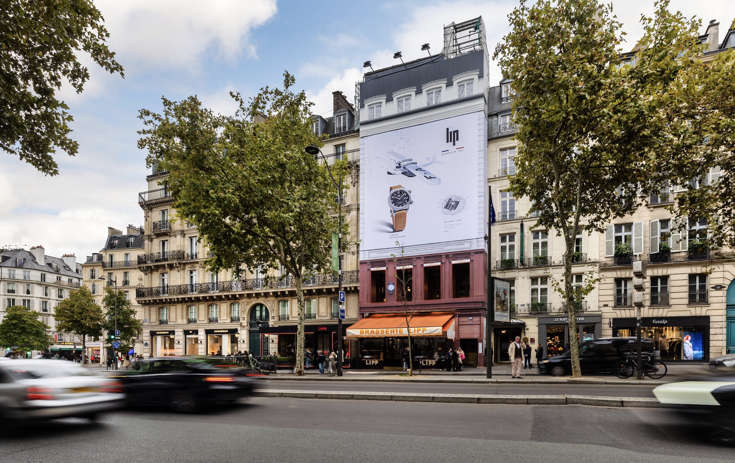 La façade de la célèbre Brasserie Lipp, institution parisienne située au 151 boulevard Saint-Germain, se pare d’une nouvelle publicité signée Lip, la mythique marque horlogère française. Surplombant la Brasserie Lipp, l’affiche célèbre le modèle Type 14, garde-temps issu de la première collection mouvement Lip R26. À la fois épuré et audacieux, ce modèle illustre le renouveau de la marque, tout en restant fidèle à son héritage : précision, élégance et innovation. Cette campagne s’inscrit pleinement dans la stratégie de développement de Lip depuis lerachat par le groupe SMB. Depuis cette reprise, la marque a relancé la production des montres à Besançon, créé de nouveaux ateliers et embauché, formé et intégré une nouvelle génération d’horlogers, perpétuant ainsi l’excellence et le savoir-faire horloger français. Deux icônes françaises, une même passion pour le temps… Fondée par Emmanuel Lipmann en 1867 à Besançon, Lip s’impose rapidement comme un symbole de l’excellence horlogère française. Porteuse d’innombrables innovations techniques — dont certaines ont marqué l’histoire mondiale de l’horlogerie — la maison incarne un espritd’indépendance et de créativité intemporel. De son côté, la Brasserie Lipp, fondée en 1880, est un haut lieu de la vie culturelle et politiqueparisienne. Depuis plus d’un siècle, elle accueille écrivains, artistes et figures publiques dans une atmosphère unique où le temps semble suspendu. Visionnaire et attaché à l’art de vivre à la française, Fred Lip appréciait la Brasserie Lipp, lieu emblématique de rencontres et d’échanges. C’est dans ce lieu mythique qu’il organisa, en 1967, la célébration du centenaire de la Maison LIP, symbole du prestige et de l’élégance de la marque. Un clin d’œil historique qui met en lumière le modèle LIP Type 14, comme si le temps lui-même fermait la boucle.