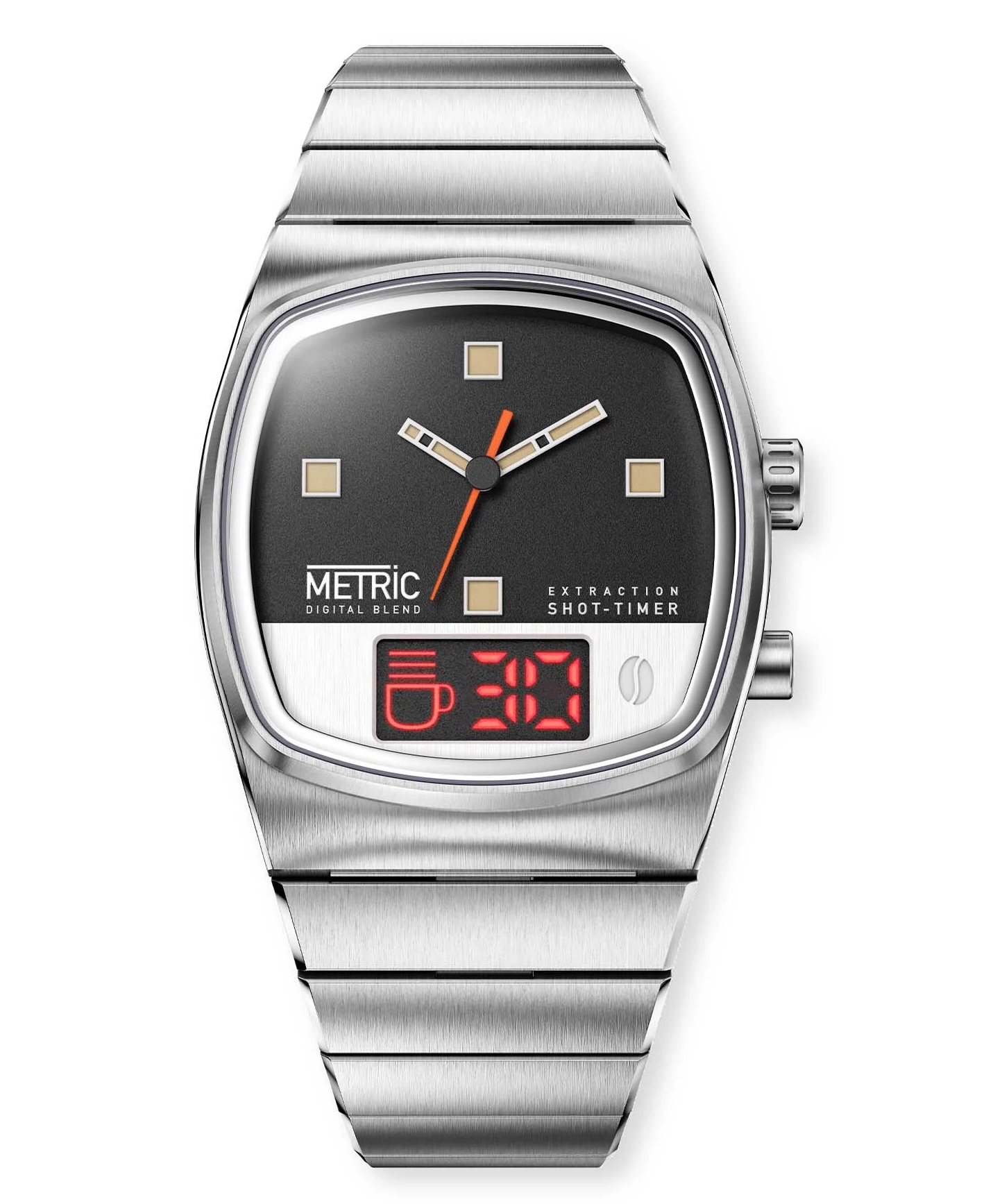 La taille de 37,50 mm rend cette montre originale par rapport à son époque tout en la rendant confortable et portable pour toutes les occasions. Le compte à rebours de 30 secondes pour l'espresso et la tasse de café (percolateur) animée offrent un moyen précis et engageant de préparer le shot parfait à chaque fois.