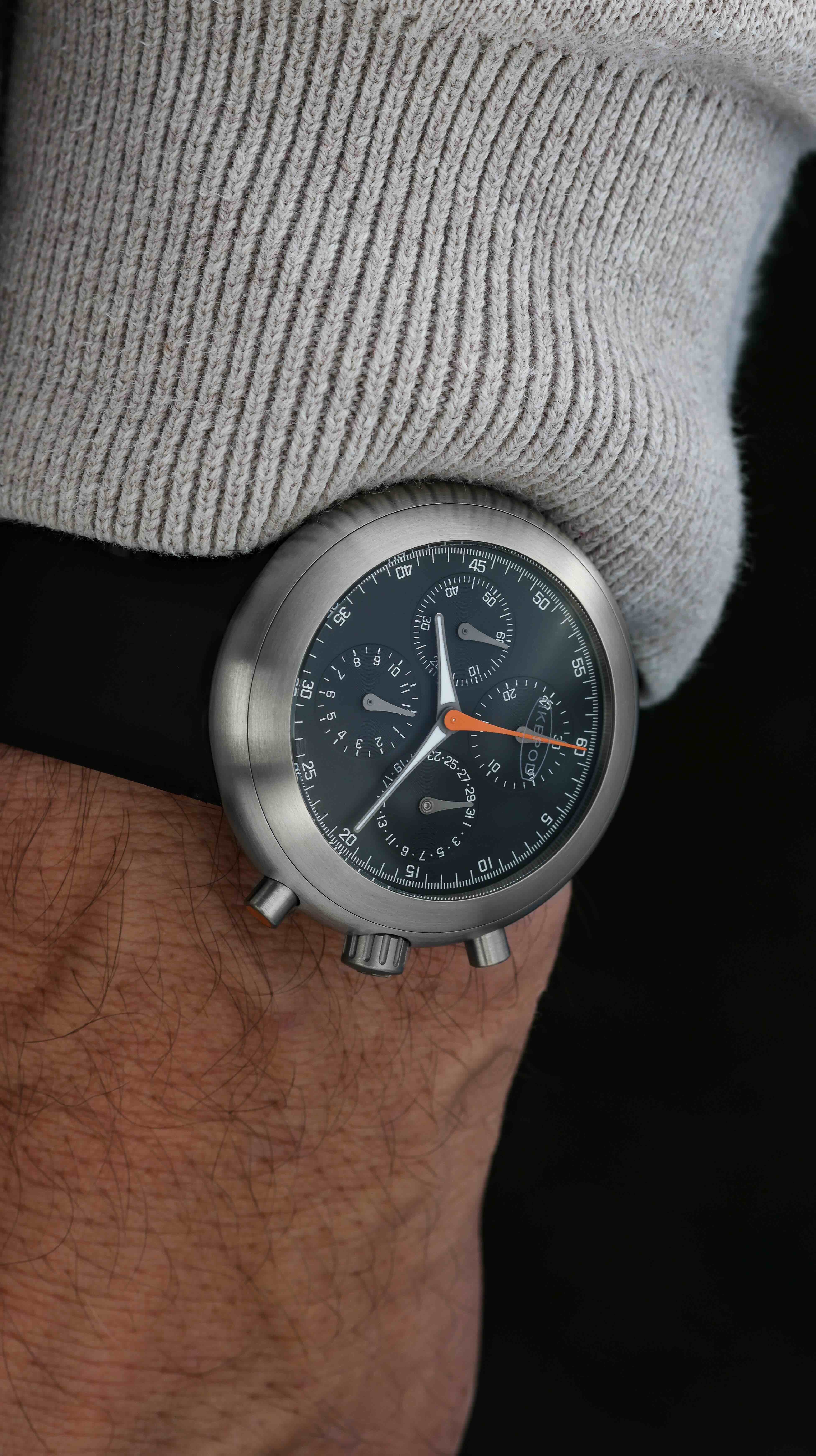 Il y a trente et un ans, en 1994, naissait Ikepod. En 1997, apparaissait la Hemipode — l’aboutissement créatif et visuel de près d’une décennie d’explorations menées par Marc Newson. Avec ses montres Pod de 1986 et 1987, le futur fondateur d’Ikepod avait déjà exploré de nouveaux territoires, développant un langage visuel cohérent et une identité de marque distinctive. Tandis que d’autres maisons ressuscitaient leurs icônes passées, Ikepod dessinait l’avenir. La Hemipode devint un jalon créatif, s’imposant immédiatement comme une icône du design horloger contemporain. Son boîtier inspiré des ovnis se distinguait dans le paysage horloger, accentué par l’absence de cornes qui permettait au bracelet en silicone de s’intégrer parfaitement au boîtier. Ikepod poursuivait un idéal d’ergonomie et de confort extrêmes — une philosophie en avance sur son temps. Ce chronographe à quatre compteurs séduisit rapidement les designers, architectes et pionniers de la tech. À une époque où peu de montres dépassaient 40 mm, son boîtier de 44 mm (sans cornes) se portait comme une 41 mm, tout en affichant une présence plus affirmée que nombre de stars de l’époque. Le succès fut immédiat. Malgré des prix supérieurs à ceux d’une Daytona, Ikepod fit sensation à Baselworld 1998. La marque fut rapidement distribuée par les plus grands détaillants du monde, ainsi que par les nouveaux « concept stores » de l’époque, tels que Colette à Paris ou 10 Corso Como à Milan.
