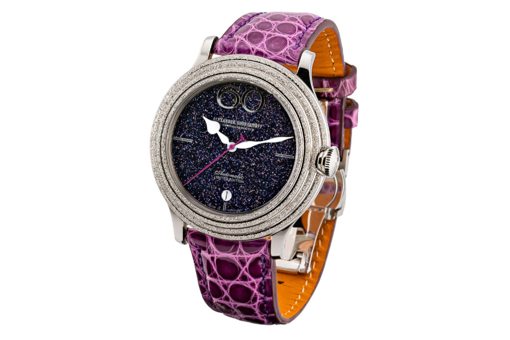 UN COMMENTAIRE ? Initiative intéressante de la maison (allemande) Alexander Shorokhoff, qui tente une granulation spéciale du boîtier, avec un traitement assorti du cadran et un usage de la palette chromatique inhabituel dans l’univers horloger (il faut compter dans les 2 500 euros pour ce boîtier en acier de 40 mm qui sera dévoilé au prochain salon Inhorgenta de Munich)…