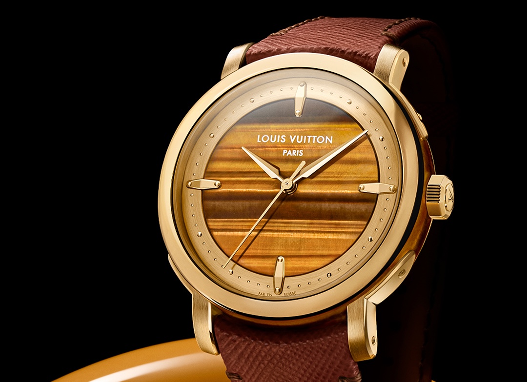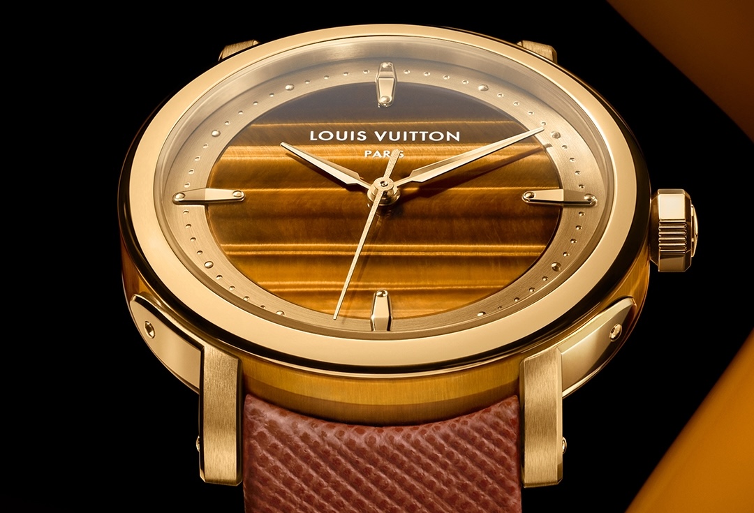 L’Escale Œil-De-Tigre souligne le soin particulier porté par la Maison à l’artisanat, aux jeux de textures et à la présence tactile. La combinaison de surfaces polies dorées et de l’éclat minéral crée une chaleur visuelle évoluant sans cesse avec la lumière. Cet ensemble harmonieux est complété par un bracelet en cuir saffiano, coloris brun savane, choisi pour la finesse de son grain et son éclat discret. La texture du cuir fait écho à la structure linéaire de la pierre, étoffant la palette de tons chauds, ocres, du garde-temps. Une fine couture ton sur ton préserve la sophistication épurée de l’ensemble. Avec son boîtier de 40 mm de diamètre, ce modèle de la collection Escale possède les proportions idéales pour s’adapter à tous les poignets et tous les usages. La lunette et le fond de boîte en or jaune dépassent légèrement de la pierre, pour la protéger des chocs légers indissociables d’un port quotidien, tout en préservant la finesse de la silhouette. À travers le fond en saphir, le calibre LFT023 certifié chronomètre suisse de haute précision déploie ses finitions raffinées. Le micro-rotor en or rose 22 carats à haute inertie assure au mouvement une réserve de marche de 50 heures, et l’alternance entre surfaces sablées et chanfreins polis des ponts fait écho au choix judicieux des textures dans l’ensemble de la montre. Avec l’Escale Œil-De-Tigre, Louis Vuitton affirme une nouvelle fois sa parfaite maîtrise de la transformation de la matière, célébrant la rencontre entre la beauté brute de la nature et la discipline de l’artisanat. Chaque Escale ornée de pierre ornementale témoigne de la poursuite de l’excellence de la Maison, inspirée de l’Art du Voyage, façonnée par l’audace et guidée par un attachement envers les beautés de la nature. Dans ce nouvel opus, la chaleur de l’or jaune et l’éclat de l’œil-de-tigre sont réunis dans une vision d’élégance intemporelle — un voyage à travers la lumière et l’éternel dialogue entre l’art et la nature.