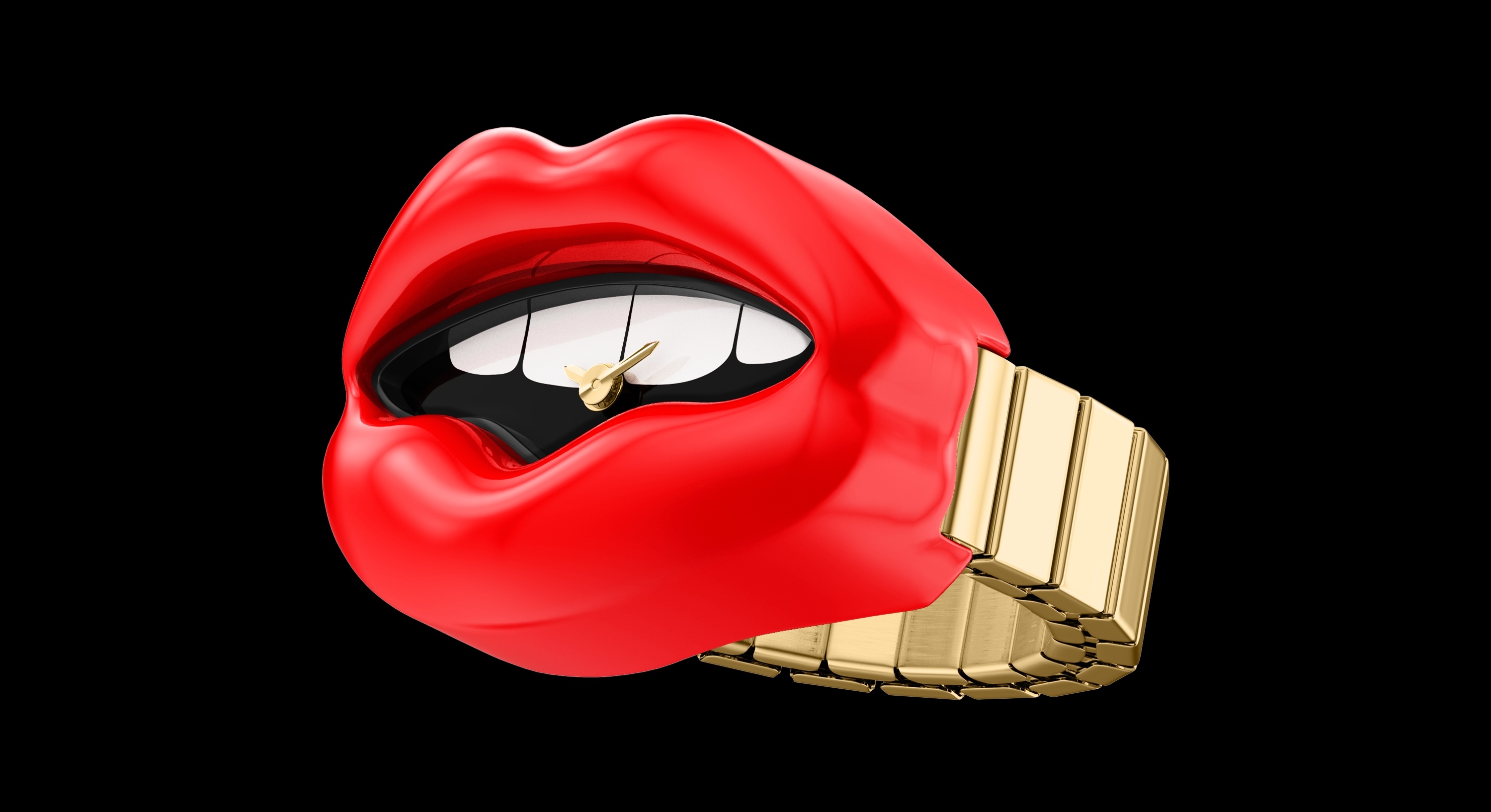 Cette montre présente un cadran noir brillant à « dents » blanches qui offre un contraste saisissant avec le boîtier en acier inoxydable rouge en forme de lèvre pour ajouter une profondeur visuelle à ce modèle ludique et raffiné. L'anneau en acier inoxydable doré est extensible pour un ajustement facile et confortable. Le mouvement à deux aiguilles permet de conserver un cadran minimaliste et épuré, soulignant l’esthétique moderne et avant-gardiste de cette pièce.