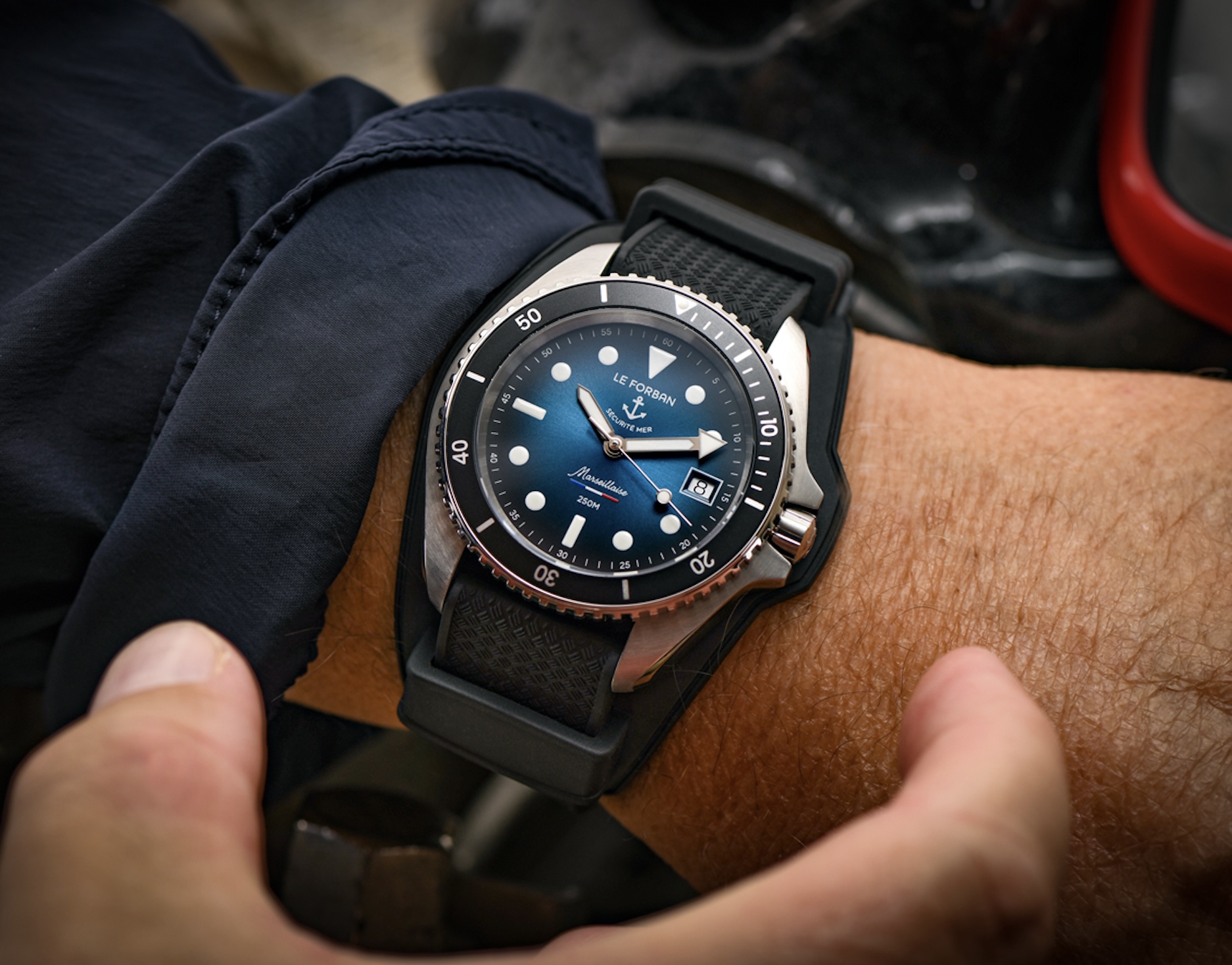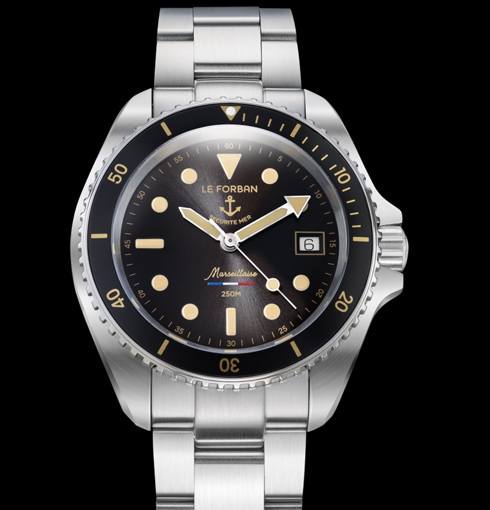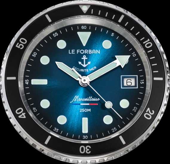 Après avoir navigué depuis 2019 dans les eaux de l’Atlantique, la marque Le Forban Sécurité Mer traverse le détroit de Gibraltar et jette l’ancre dans la cité phocéenne avec son nouveau modèle : la « Marseillaise ». Plongeuse hommage au modèle « Monnin » de la marque (lancé en 1979), la Marseillaise conserve le caractère de son ainé… en mieux ! Avec une épaisseur réduite de 13 mm à moins de 12 mm, un diamètre ramené de 42 mm à 40,8 mm et une longueur de cornes à cornes de 46 mm, la Marseillaise est plus élégante et plus facile à porter que le modèle vintage, tout en conservant son identité.C’est une véritable plongeuse à (re)découvrir. Avec son étanchéité améliorée de 250 m (au lieu de 200 m), La Marseillaise est une véritable montre de plongée. Elle en reprend tous les codes traditionnels : lunette de plongée unidirectionnelle 120 clics, cadran « diver » ultra-lisible, aiguilles « flèches » et trotteuse Lollipop.